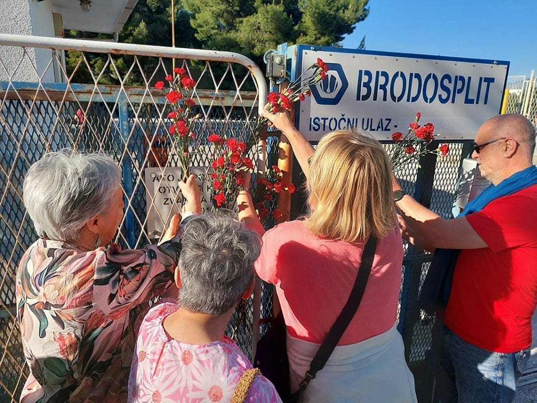 Povodom Praznika rada članovi Možemo! - Političke platforme Split položili su buket crvenih karanfila na glavnoj porti Brodosplita, kao simbola gubitka reputacije Splita kao proizvodnog i radničkog grada.