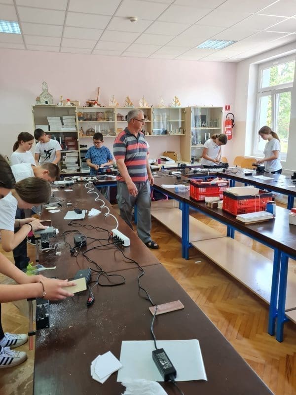 Odmah po završetku prve radionice, održana je i druga radionica, na Lovreću, u osnovnoj školi „Silvije Strahimir Kranjčević“. Radionici su prisustvovali učenici petih i šestih razreda, sveukupno 21, zajedno sa svojim nastavnikom tehničke kulture, Željkom Perićem. Učenici su na radionicama modelarstva upoznali rad sa strojem koji je potpuno siguran za korištenje i prilagođen za rad s djecom, a služi za obradu drva – ubodna pila Unimat.