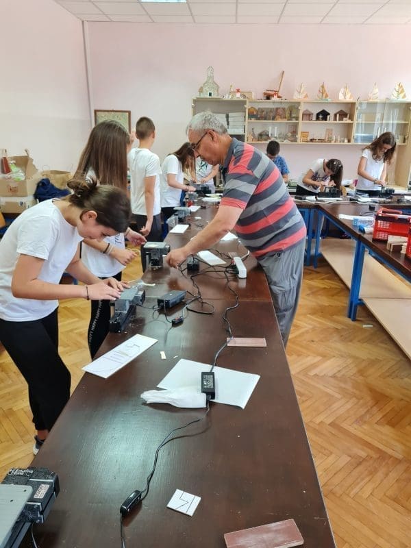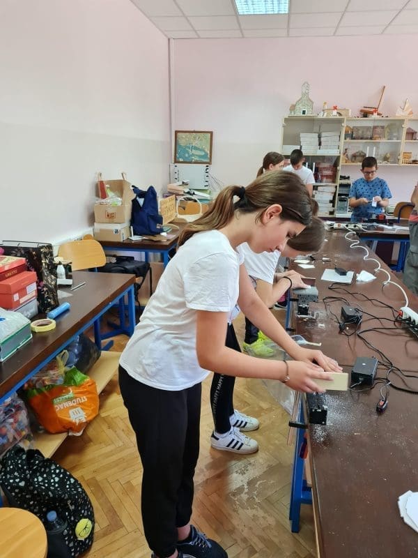 Uspomoć Unimata i dodatnih alata (turpije, brusne daščice, nožići..), učenici su od tankih komada šperploče oblikovali jednostavne svakodnevne uporabne predmete, držače za ubruse, koje su po završetku izrade nosili sa sobom.