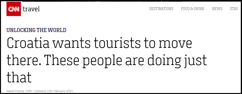 I dalje je moguć dolazak posjetitelja iz trećih zemalja u Hrvatsku, no uz negativan test na koronavirus ili obaveznu karantenu. CNN piše kako je Hrvatska i olakšala situaciju za one koji žele u našoj zemlji ostati i dulje. Imigracijski propisi su prilagođeni digitalnim nomadima izvan EU pa im se omogućuje jednogodišnja boravišna dozvola, uz uvjet da im za ulazak u zemlju nije potrebna turistička viza.