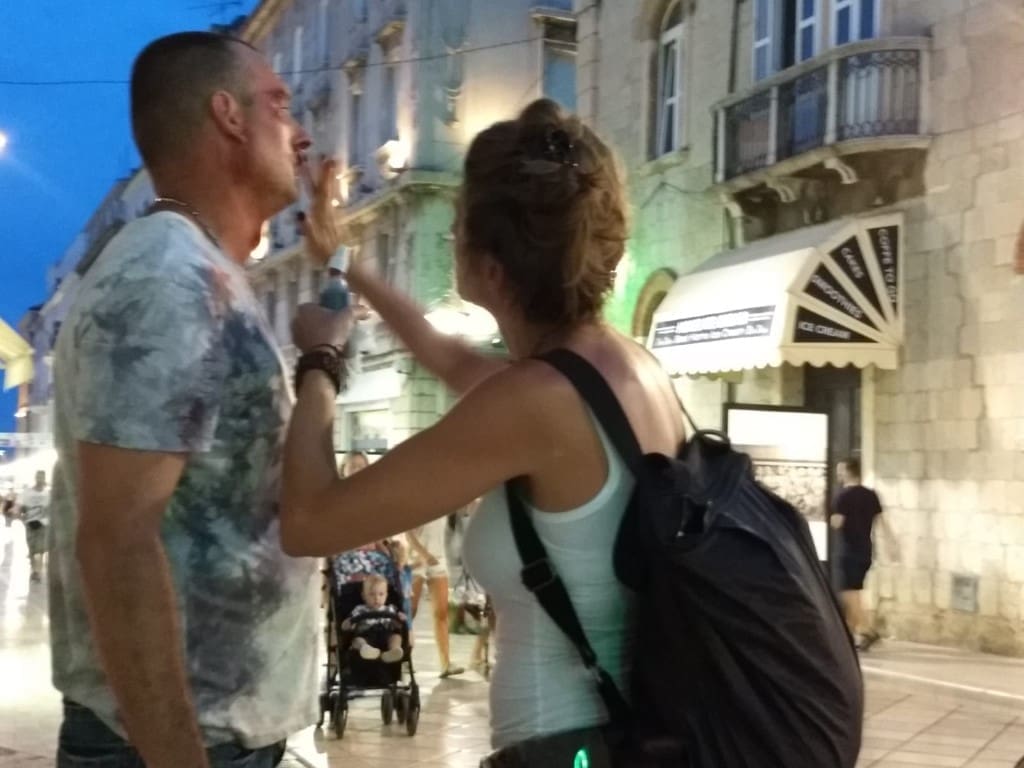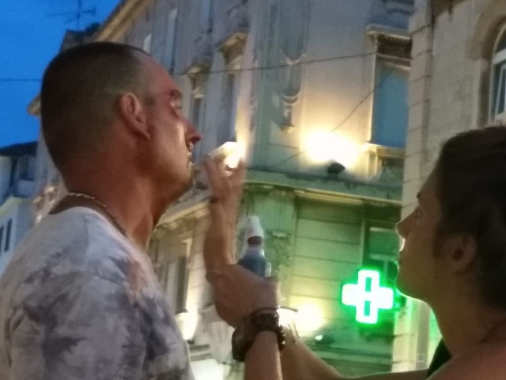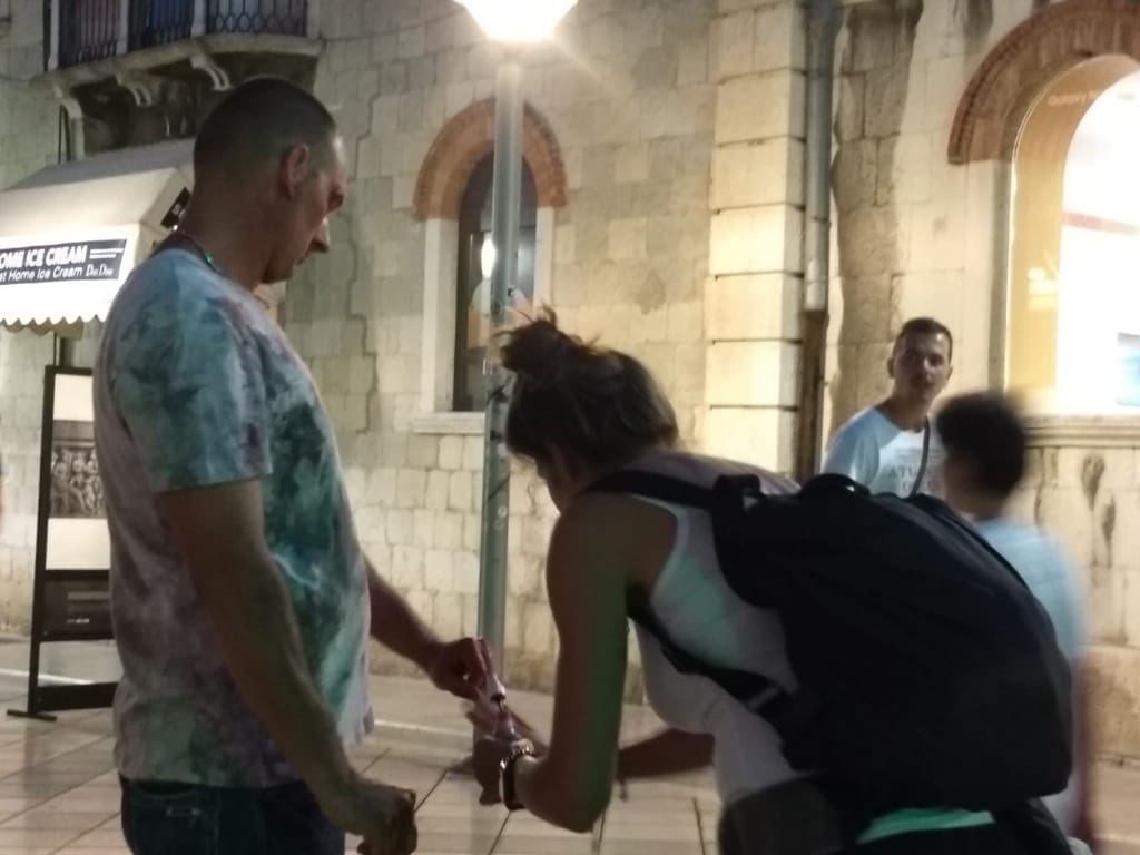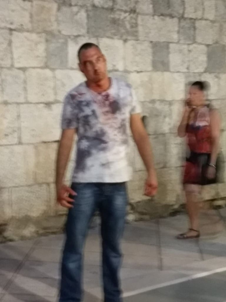 Svi oni koji su predvečer odlučili prošetati centrom Splita, točnije Marmontovom ulicom, zasigurno su se šokirali viđenim. Naime, na vrhu Marmontove mogli su naići na čovjeka cijelog u krvi. Kao da ga je netko prebio.