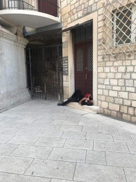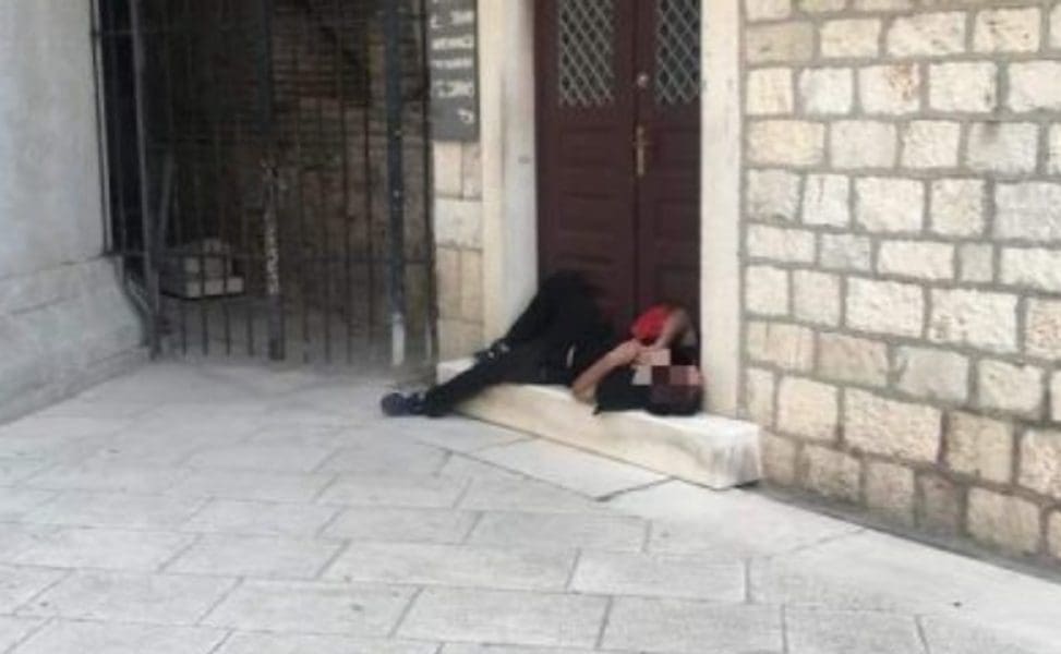 Na neobičan prizor rano jutros naletjeli su stanovnici splitskog Geta. Naime, ispred župnog ureda u blizini katedrale Svetog Dujma jedan muškarac je točno ispred ulaznih vrata zaspao.