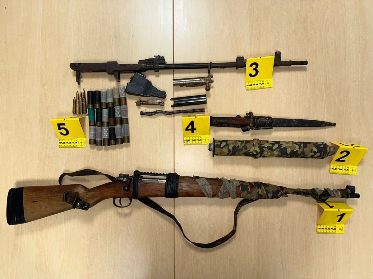 U sklopu kriminalističkog, jučer su temeljem naloga suda izvršene pretrage dviju kuća na širem sinjskom području koje koristi spomenuti te je tom prilikom pronađena puška, 22 komada streljiva, prigušivač, bajuneta te dijelove poluautomatske puške.