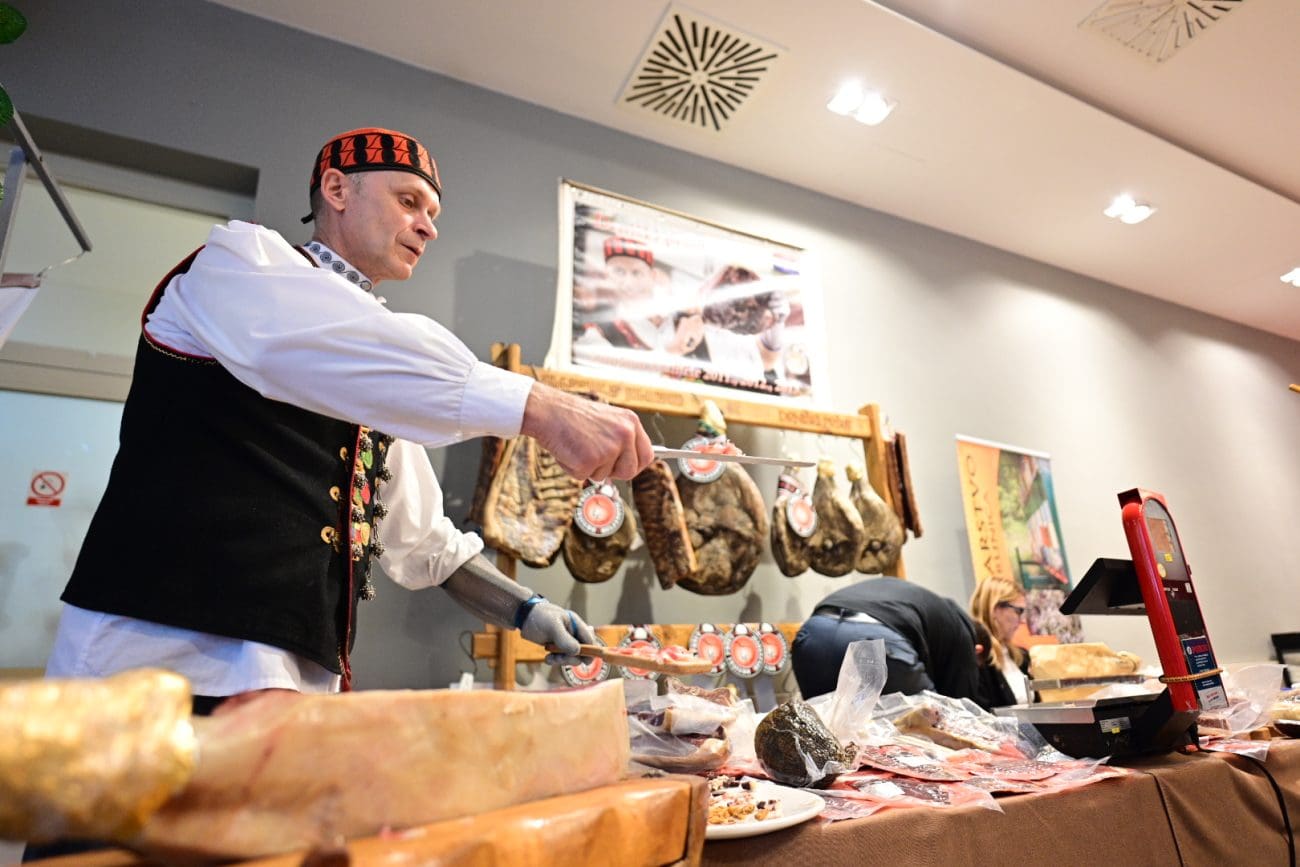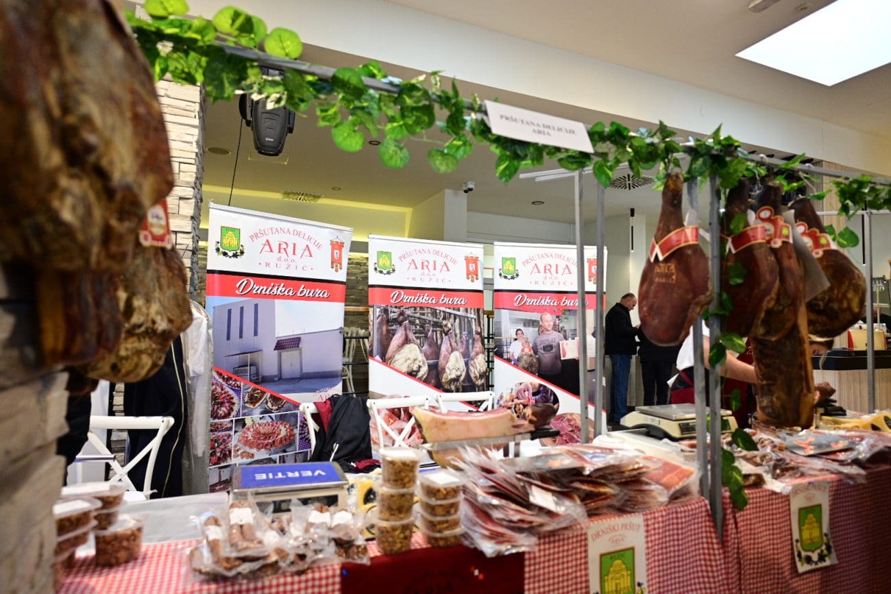 Na sajmu je svoje je proizvode izložilo 60-ak izlagača iz cijele Dalmacije, Istre, Slavonije, ali i inozemstva, Slovenije, BiH i Italije. Uz pršute i ostale suhomesnate proizvode u ponudi su i maslinovo ulje, sirevi, vino, pčelarski proizvodi, krušni proizvodi te druge delicije, kao i suveniri i rukotvorine.