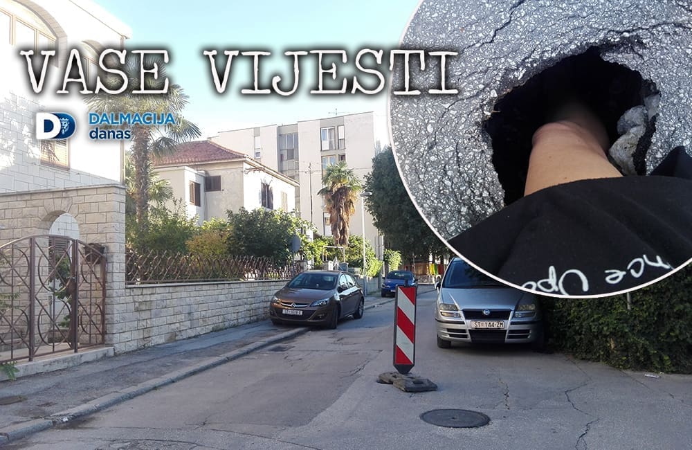 Na redakcijski email (info@dalmacijadanas.hr) javila nam se čitateljica, stanovnica Smiljanićeve ulice u Splitu, zbog rupe u asfaltu koja nasred ulice stoji već neko vrijeme. Lokacija je označena znakom koji, kaže, vozači često uklanjaju jer im otežava prolaz automobilima, čime dovode u opasnost i pješake i druga vozila.