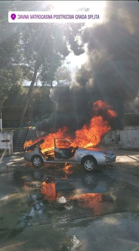 Vatrogasci su vježbali intervenciju gašenja i spašavanja tijekom požara automobila.