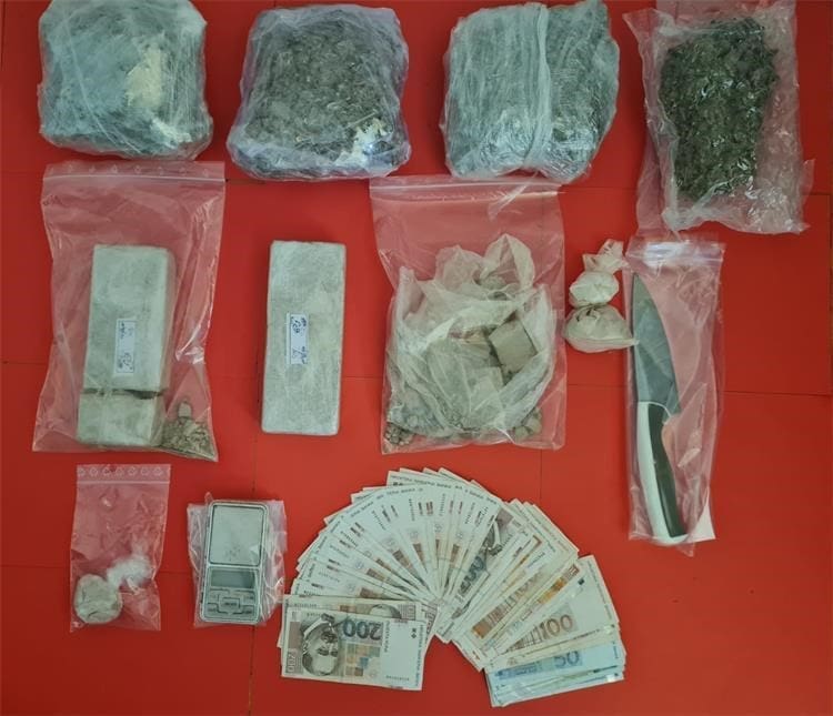 Tijekom kriminalističkog istraživanja provedene su pretrage doma i prostorija kojima se osumnjičenik koristi na zadarskom području, gdje je pronađeno više pojedinačnih pakiranja PVC vrećica u kojima se nalazilo ukupno oko 1298,8 grama droge heroin, oko 1796,7 grama droge marihuana, digitalna vaga za precizno mjerenje, preko 7 tisuća kuna za koje se sumnja da potječe od preprodaje droga te drugi predmeti koji se dovode u vezu s počinjenjem kaznenog djela.