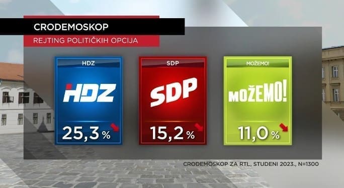 Pobjednik za nove izbore bio bi isti. Još od izbora 2020. HDZ je zadržao prvu poziciju. Vladajuću stranku bira nešto više od četvrtine ispitanika (studeni 25,3 posto - listopad 25,6 posto) uz blagi pad u odnosu na listopad. Drugi izbor i dalje je SDP (studeni 15,2 posto - listopad 15,6 posto) dok je MOŽEMO! treći (studeni 11,0 posto - listopad 11,4 posto). U teoriji ove dvije lijeve opcije imaju isto kao HDZ, ali ovdje je cijela Hrvatska jedna izborna jedinica.