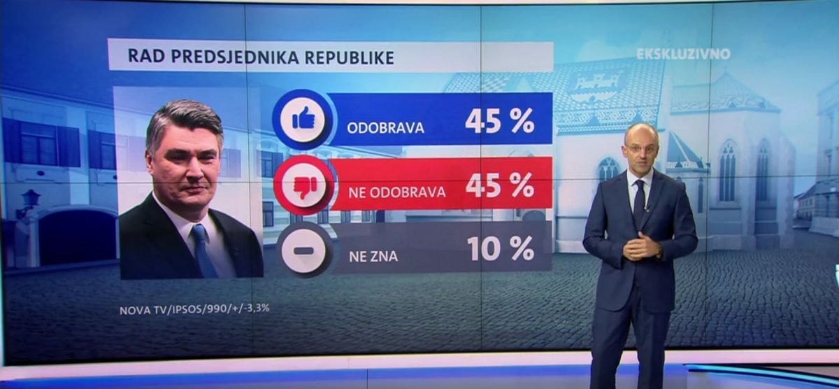 Predsjednik Zoran Milanović svojim radom podijelio je birače. Njegov rad podupire 45 posto birača, a isto toliko ih ne podupire. No on je posljednja dva mjeseca popravio rejting ''pozitivnih'' birača.