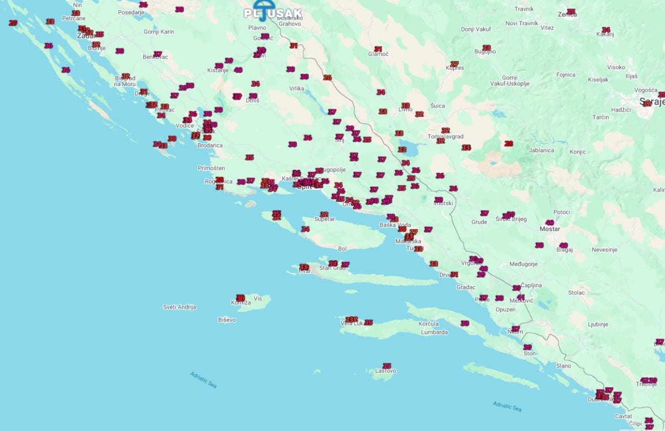 Slične vrijednosti mjere i automatske meteorološke postaje mreže Pljusak.com. Najviša temperatura u Metkoviću i Milošićima prešla je 40°C, a još je desetak lokacija vrlo blizu toj vrijednosti.