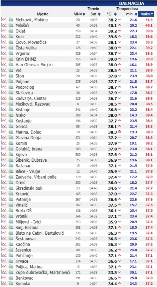 Na DHMZ-ovoj meteorološkoj postaji Knin maksimalna temperatura prije 14 sati bila je 39.9°C.