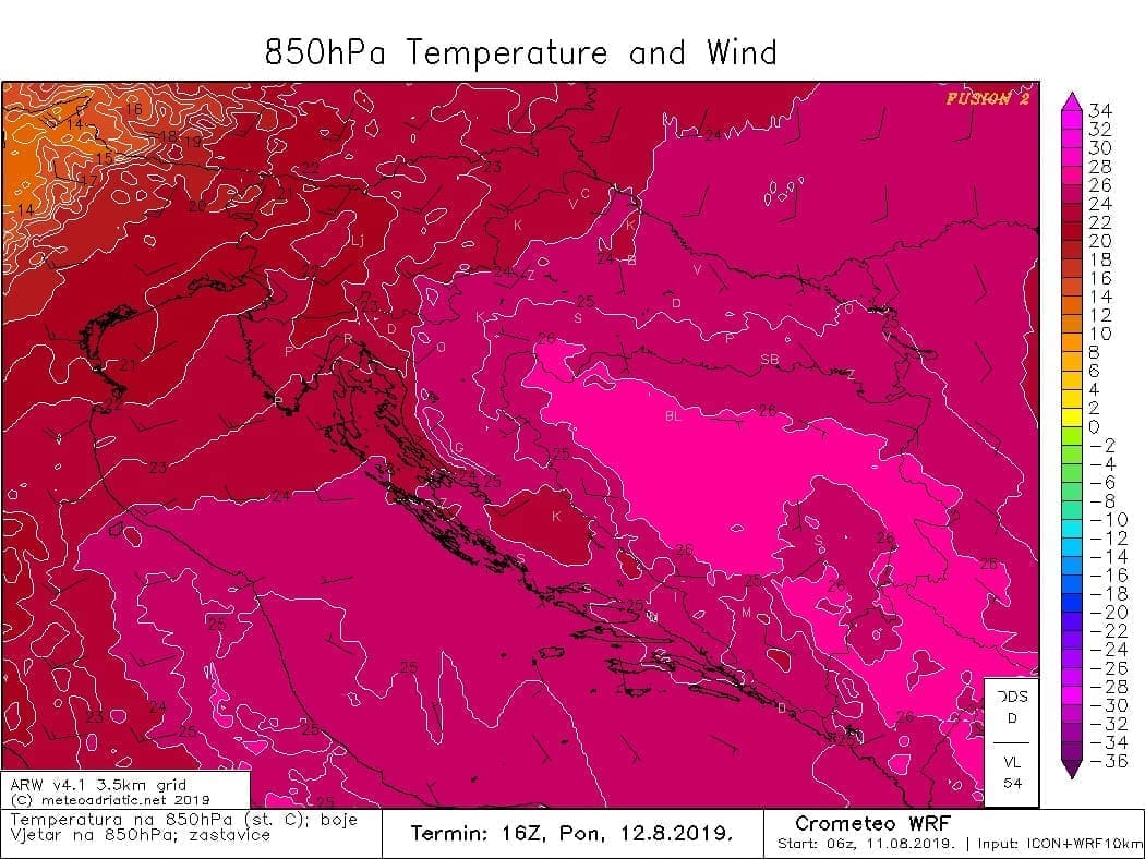 Visoke temperature zraka danas je bilo vrlo teško podnijeti zbog visoke koncentracije vlage u zraku. Primjerice, u Splitu je u 14 sati bilo 35°C uz vlagu od 40 posto, što daje osjet ugode, odnosno indeks topline (humidex) od čak 42°C. Kaštel Štafilić je u 15 sati mjerio 36,4°C uz 36 posto vlage što daje osjet ugode od 44°C. Što reći na Mostar koji je imao 40°C uz 37 posto vlage, pa je osjet ugode bio 51°C.