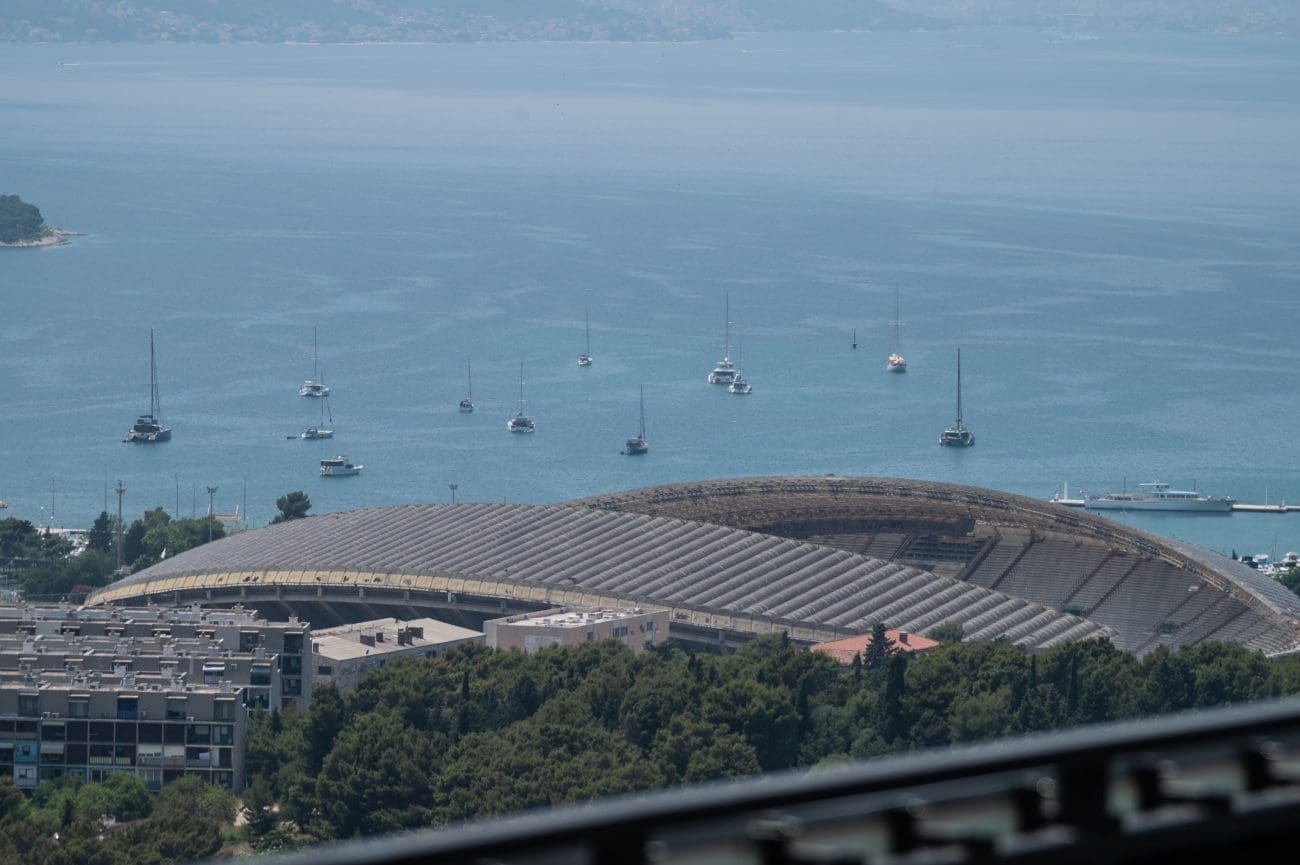 Naša ekipa popela se na sam vrh tornja, do krovne terase s koje puca 360-stupanjski pogled. Pogledali smo prema istoku – pred nama su bile ceste i neboderi Blatina, pa ka zapadu – Marjan i otvoreno more. Ispod nas su se “razlijali” Split 3, Pujanke, Kocunar, Brda, Skalice, Trstenik, Žnjan, Firule… sve do Kaštelanskog zaljeva, trogirskog kraja i Kozjaka, dok se na jugu sjajilo Jadransko plavetnilo.