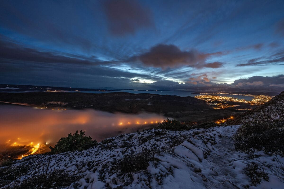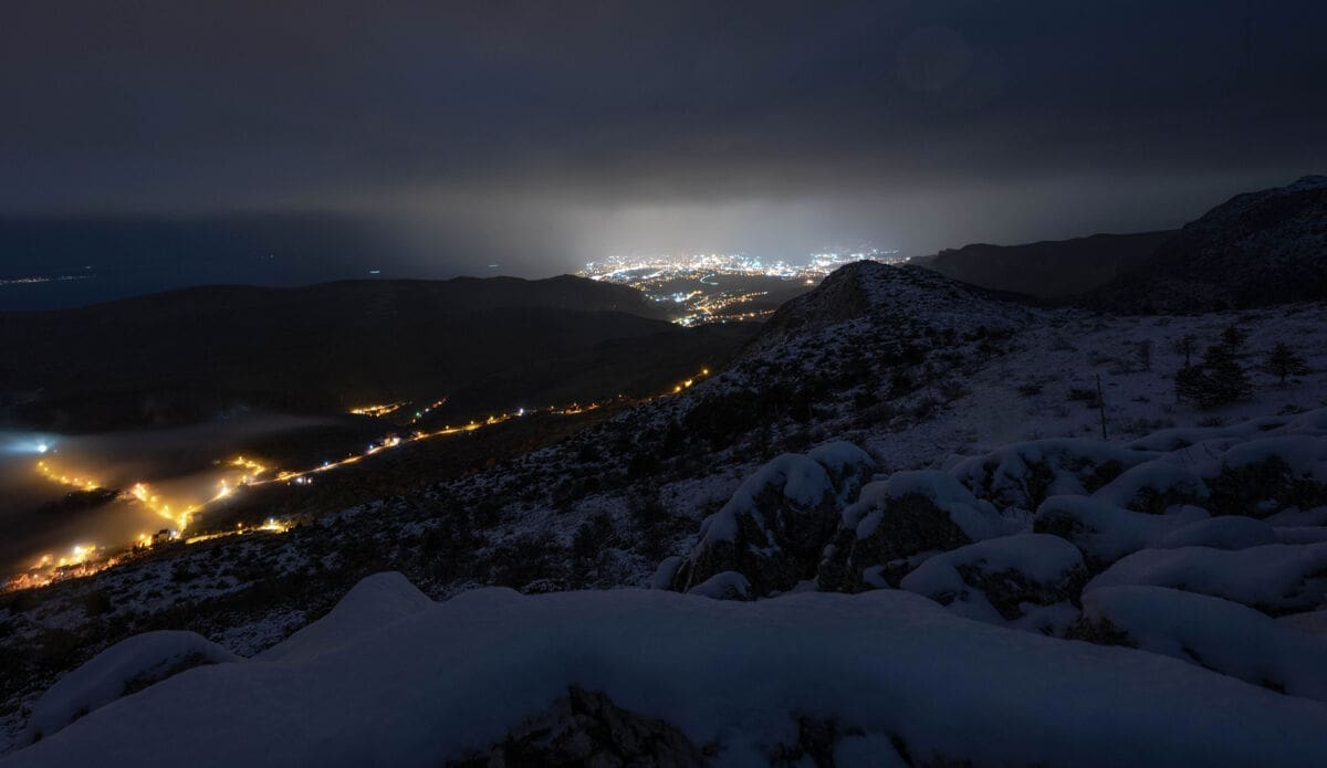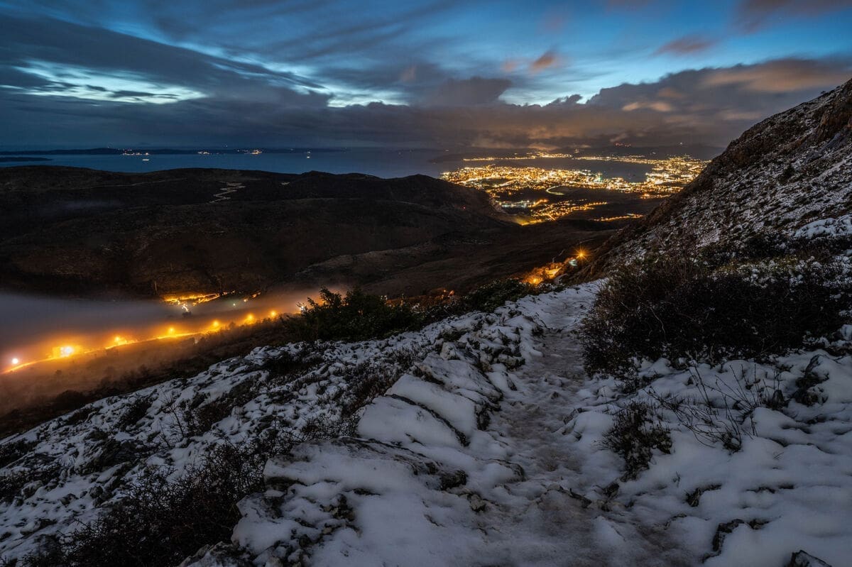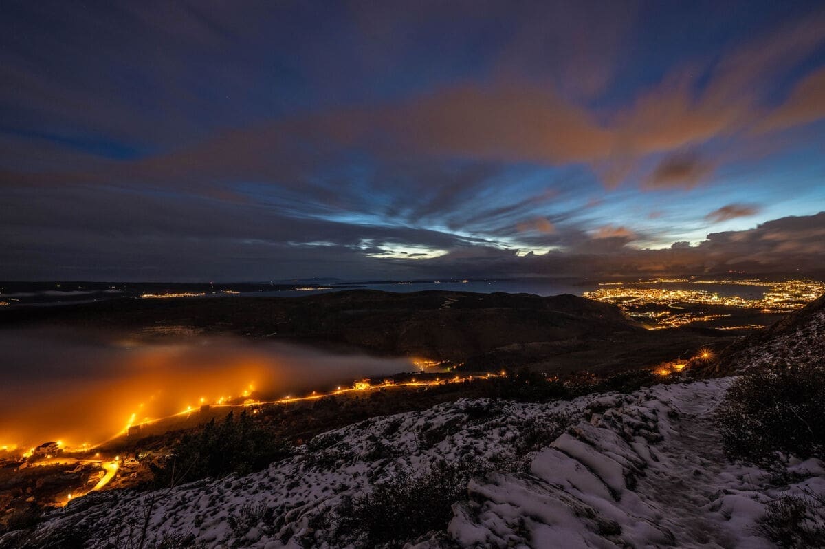 Mi vam donosimo fotogaleriju upravo s Mosora, gdje prvo možete vidjeti naselje Gornje Sitno koje je u utonulo u maglu, pogled na Split, a potom i snježne fotografije iz viših predjela planine...