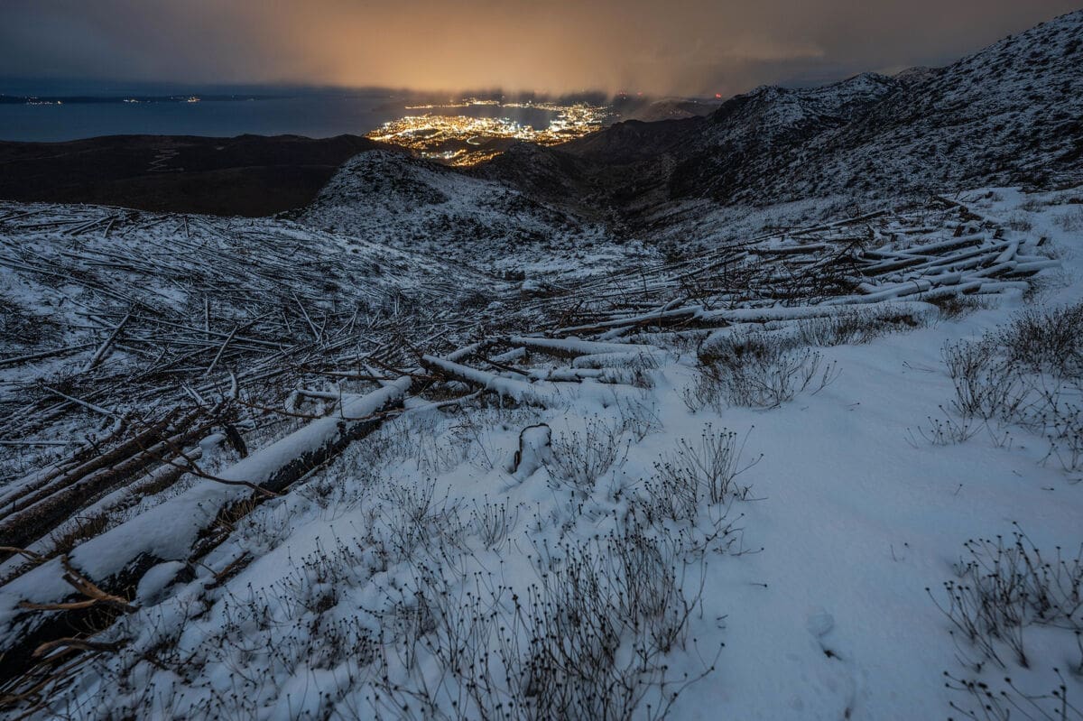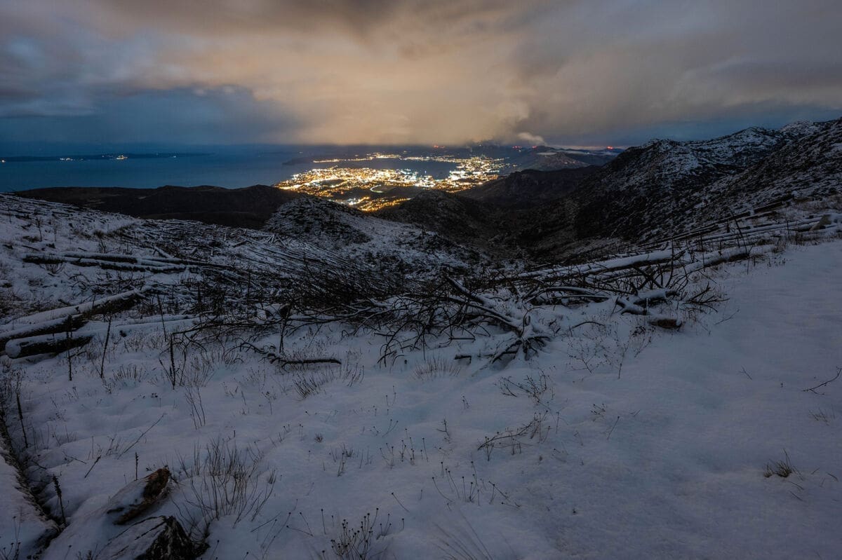 Snijeg nije padao uz obalu, ali ga je bilo na obalnim planinama. Među njima je i Mosor gdje je snježna granica bila oko 500 metara nadmorske visine.