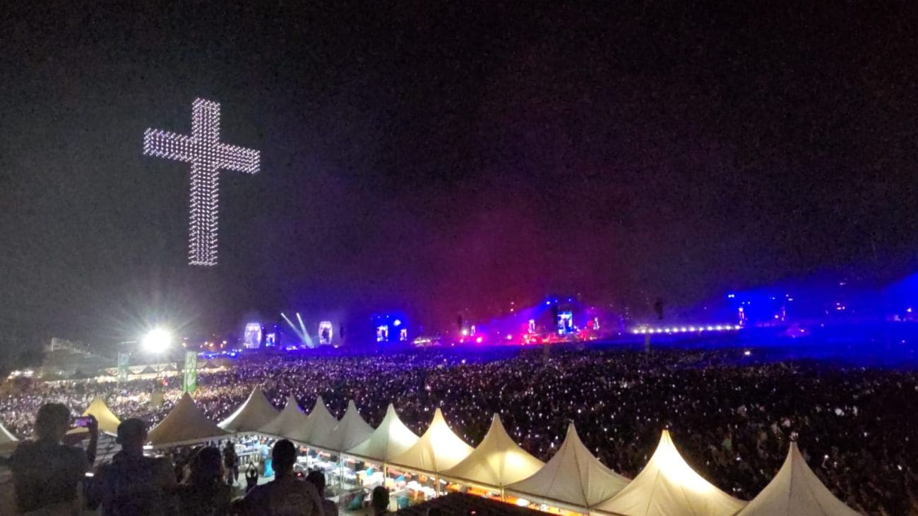 Tijekom koncerta Marka Perkovića Thompsona počeo je i spektakularan show s dronovima koji su nad publikom stvarali vjerske motive.