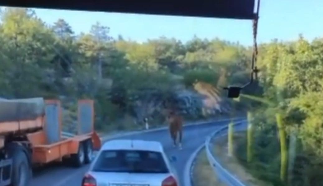 Zanimljiv video snimljen je danas u Zagori nadomak Splita. Naime na prometnici u smjeru Klisa u mjestu Konjsko vozači su naletjeli na nesvakidašnji prizor.