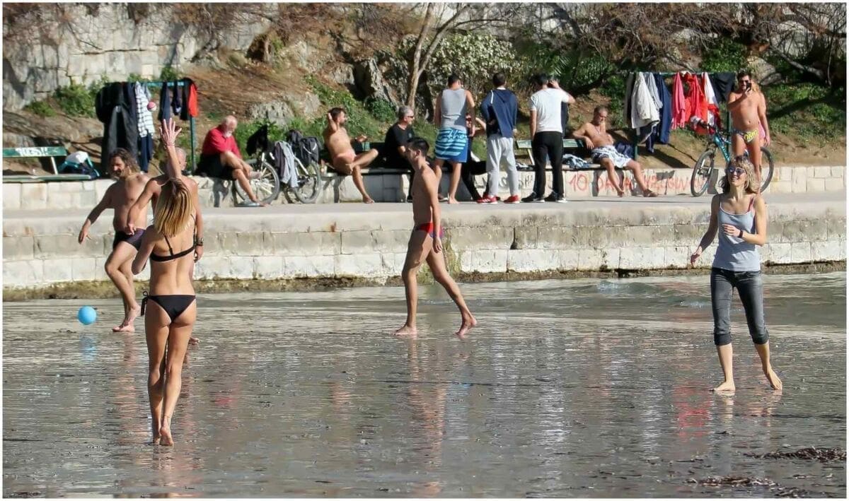 U ranim poslijepodnevnim satima na Bačvicama u Splitu bilo je puno onih koji su upijali zrake zimskog sunca, a tradicionalno, nije izostao ni picigin.