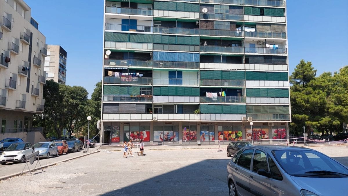 Parking sa 100 mjesta između Jobove 1 i Jobove 3 u Spinutu je ispražnjen, opasan trakama i ogradama sa zabranom prolaska no, dućan Victe u prizemlju zgrade gdje se plafon balkona na zadnjem katu urušio - i dalje radi.