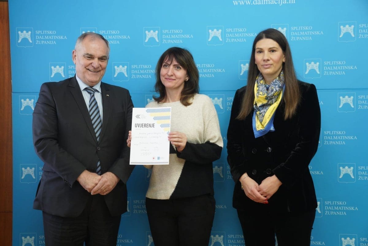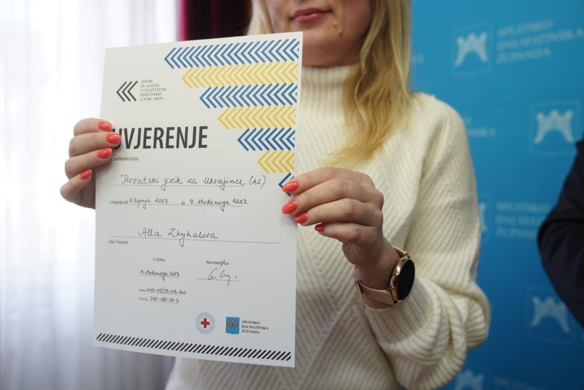 Župan Splitsko-dalmatinske županije Blaženko Boban u ponedjeljak, 4. prosinca godine u dvorani Splitsko-dalmatinske županije uručio je uvjerenja polaznicima tečaja hrvatskog jezika za raseljene osobe iz Ukrajine.