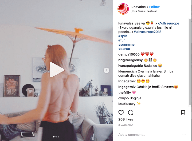 Festival obožavaju i domaće modne snage pa je tako dolazak najavila i Anamarija Asanović: “Obucite se najbolje što možete i dođite na najluđi i najbolji ULTRA Music Festival. Split će još jednom biti pravi domaćin, a festival je iz godine u godinu sve je bolji. Ludilo atmosfera, ljudi koji nam dođu iz doslovno iz cijelog svijeta i neko neopisivo zajedništvo i veselje – to su razlozi zašto sam tamo svake godine i zašto toliko volim ovaj festival.“