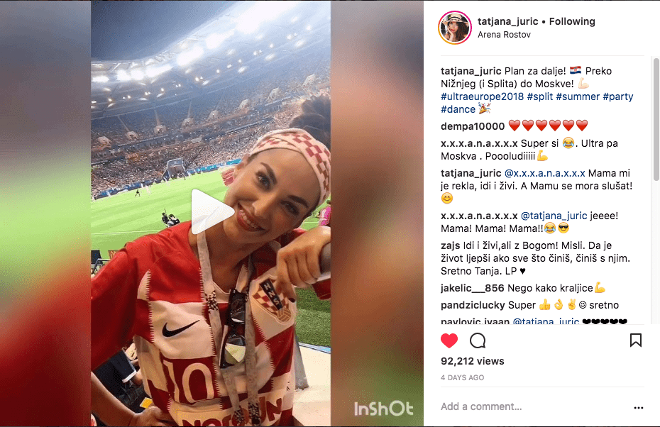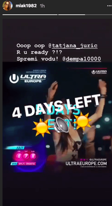 Radijska voditeljica Tatjana Jurić poslala je pravu sportsku pozivnicu iz Rusije najavljujući tako svoj dolazak na festival ULTRA Europe. Ovo će biti njezin prvi posjet festivalu, a želja joj je posjetiti sve festivalske destinacije. “Do finala je dugo, taman da se zagrijemo na ULTRI! Vidimo se u Splitu, a onda na finalu u Moskvi. Samo još moramo doznati tko ide na naše Vatrene. ULTRA, stižemo!“, objavila je na svom Instagram profilu, a na festivalu će joj se pridružiti i kolegica Mia Kovačić.
