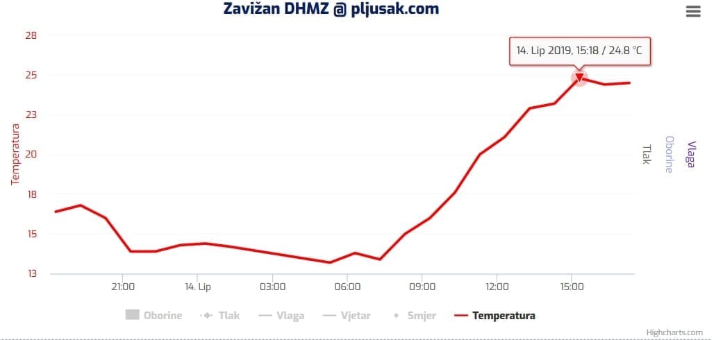 Spomenimo da je na biokovskom vrhu, Svetom Juri, danas temperatura zrak rasla do 22°C, ali je Sveti Jure oko 160 metara viši od Zavižana.