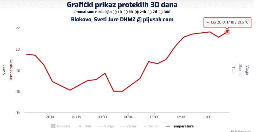 Spomenimo da je na biokovskom vrhu, Svetom Juri, danas temperatura zrak rasla do 22°C, ali je Sveti Jure oko 160 metara viši od Zavižana.