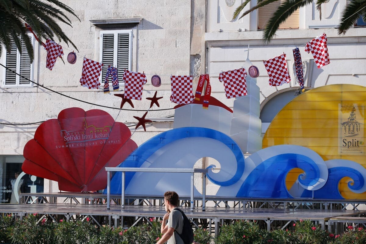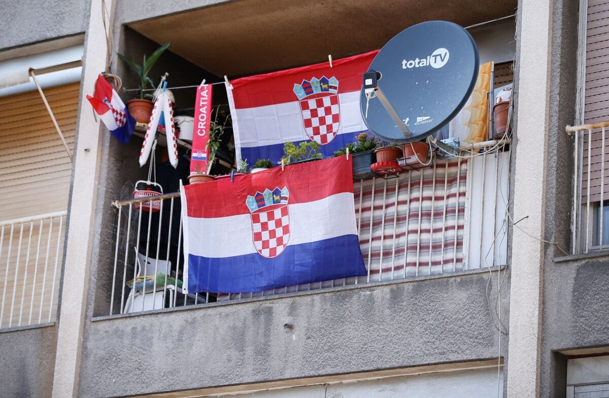 Balkoni i prozori su u kockastim motivima, ulice su pune navijačkih dresova...