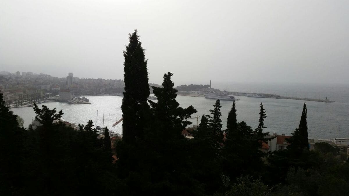 Drugdje koncentracije pustinjskog pijeska i prašine bitno smanjuje vidljivost. Jutrošnji ugođaj i pogled s Marjana više priliči nekoj lokaciji na Bliskom istoku, nego Europi.