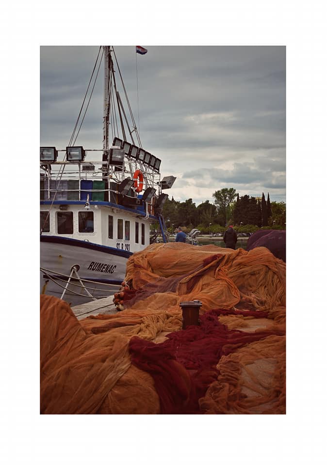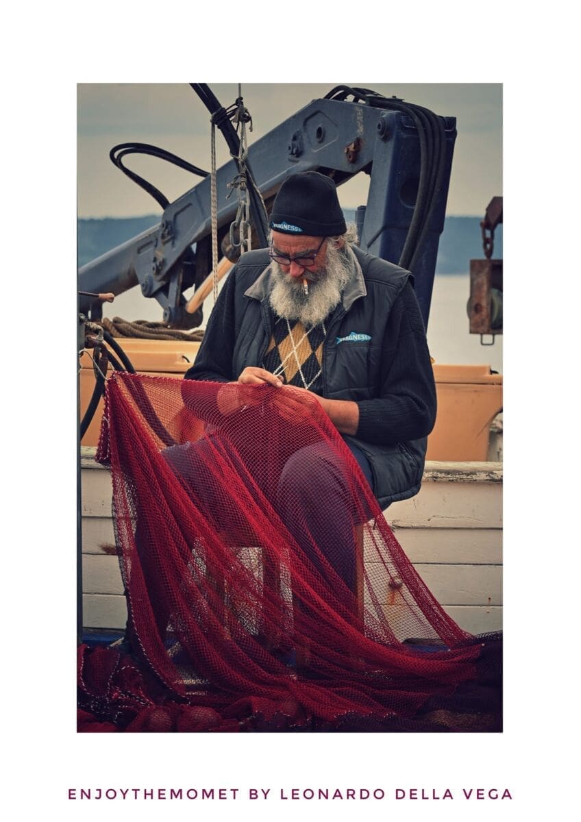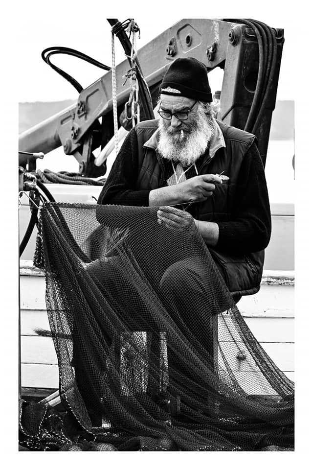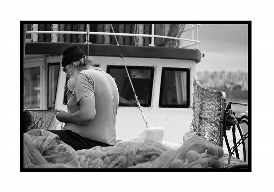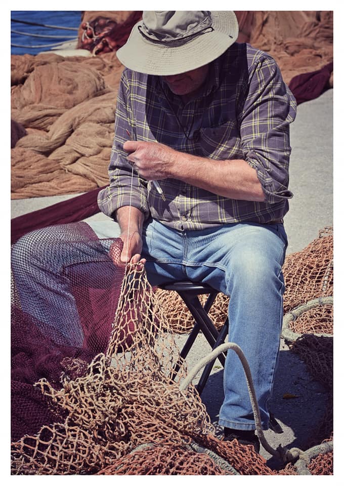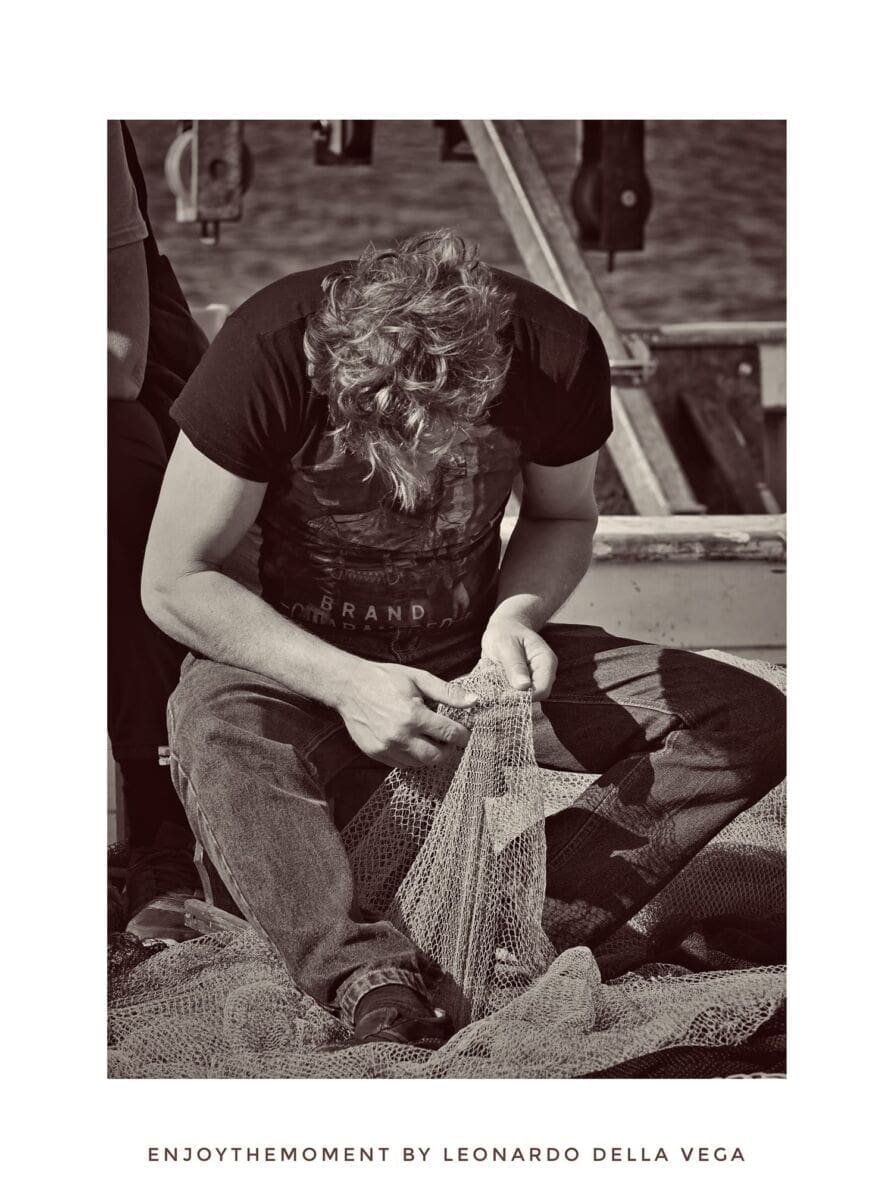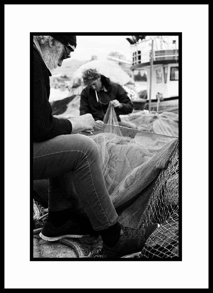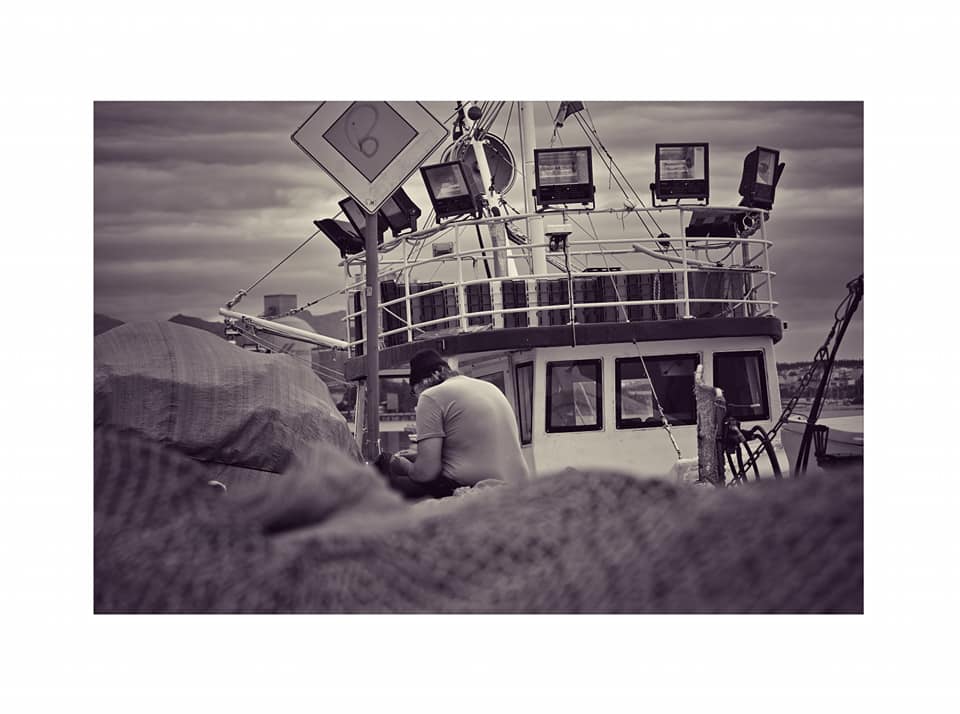 Drugu fotogaleriju posvetio je, kako ih je nazvao, kaštelanskim manekenima odnosno ribarima iz Kaštel Sućurca. Dominira motiv krpanja mreža pred odlazak na more adaptiranim brodom Slavica, inače kupljenim na otoku Rabu i pretvorenim u ribarski brod. Uživajte...