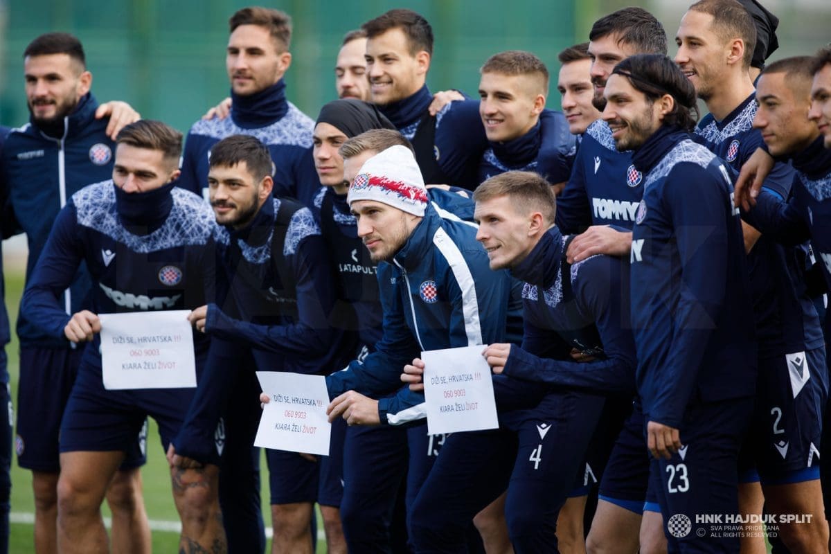 Igrači Hajduka su se uključili u humanitarnu akciju "Kiara želi život" na današnjem treningu,