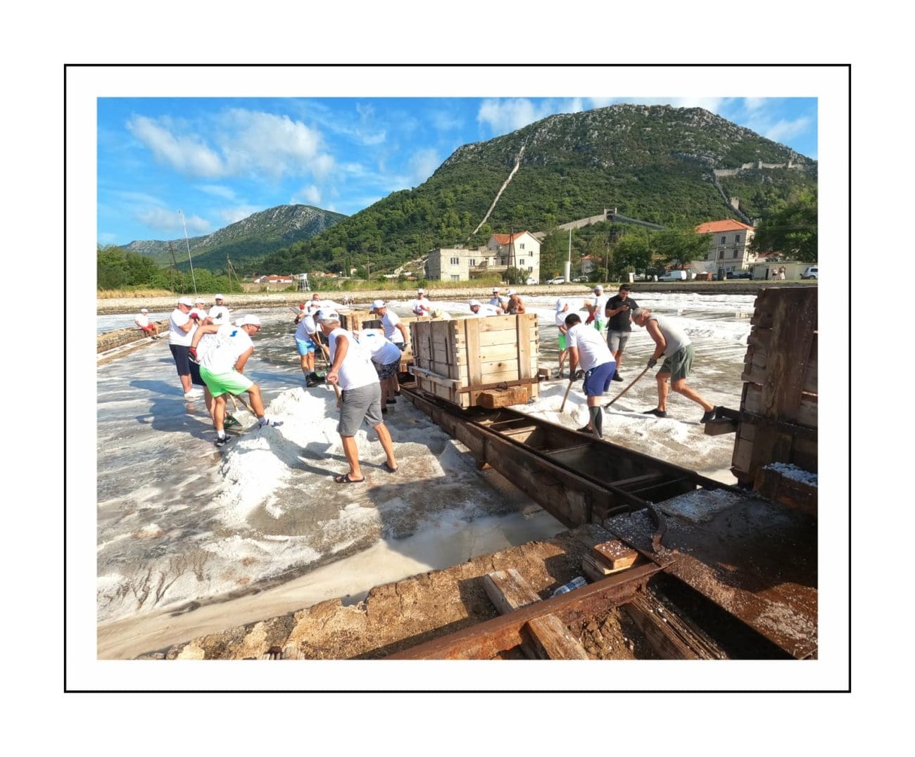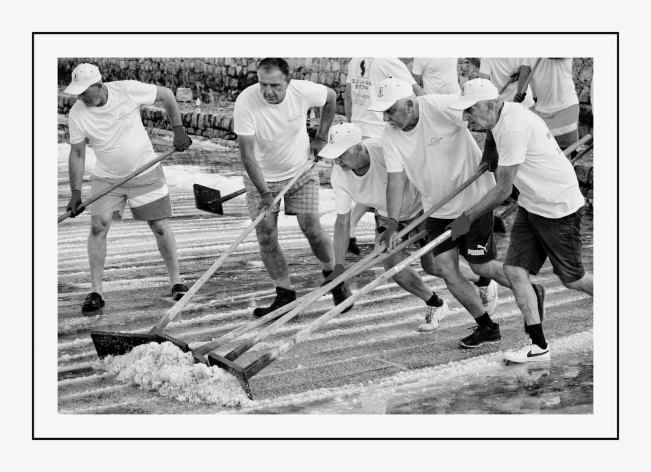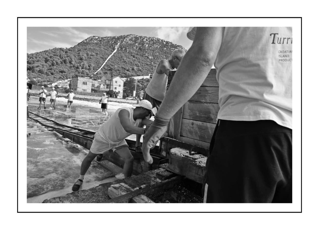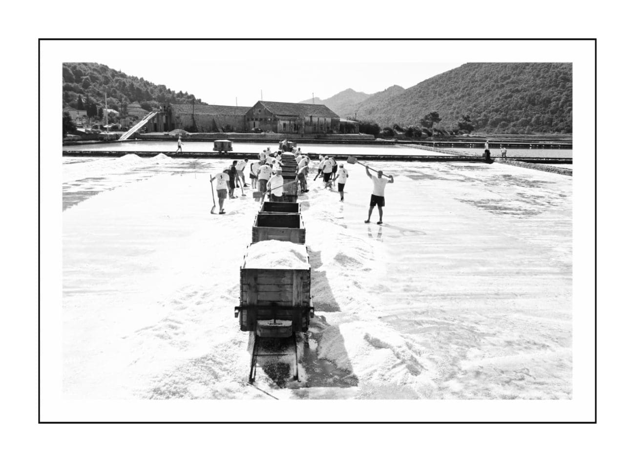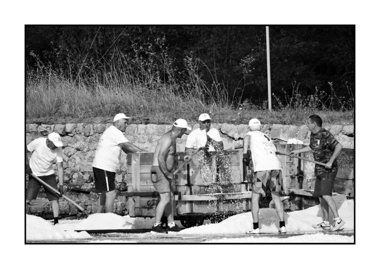 Slika je gotovo ista kakva je bila i prije nekoliko stotina godina: muškarci u bijelim majicama i kapama ulaze u bazene i lopatama skupljaju sol, potom je prenose u stare drvene vagone. Težak, ali ritmičan rad, popraćen osmijesima i zajedništvom, vraća u život duh vremena kada je sol bila “bijelo zlato” i čuvala bogatstvo Dubrovačke Republike.