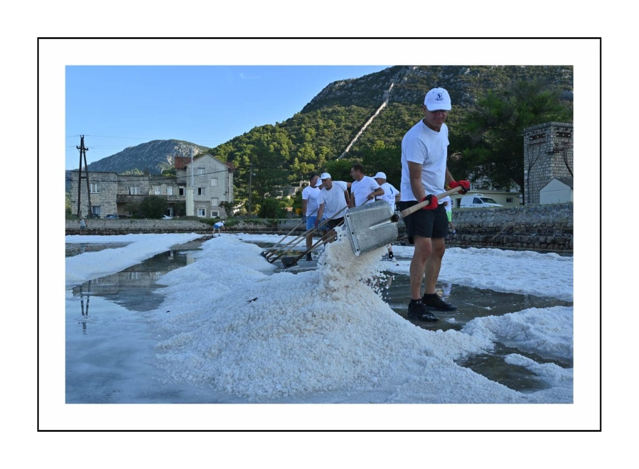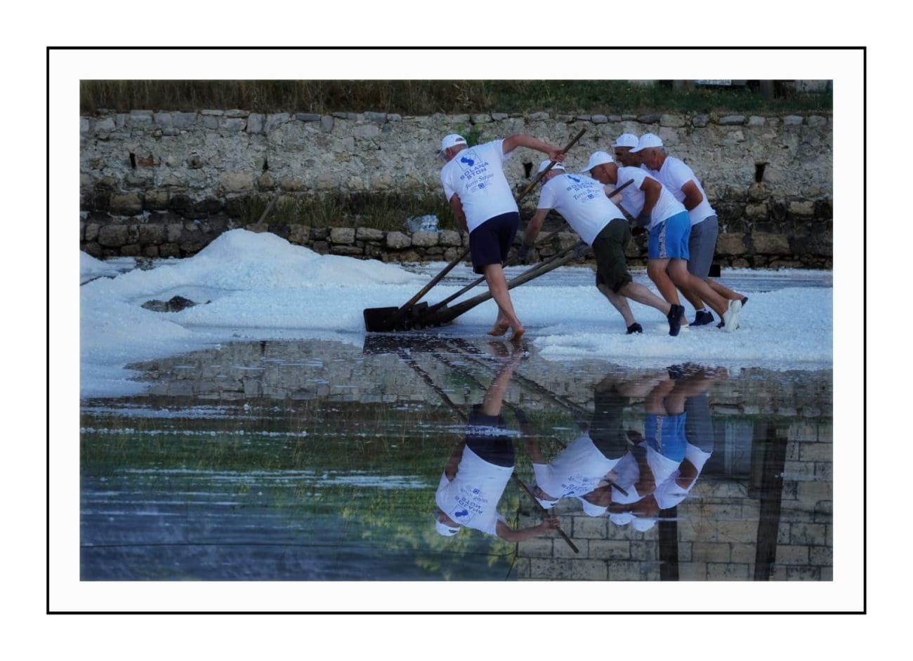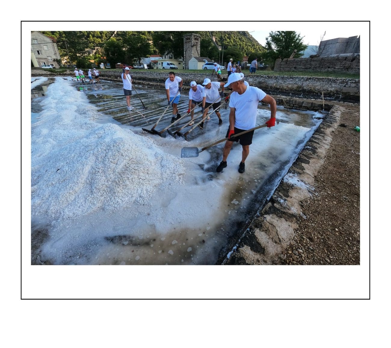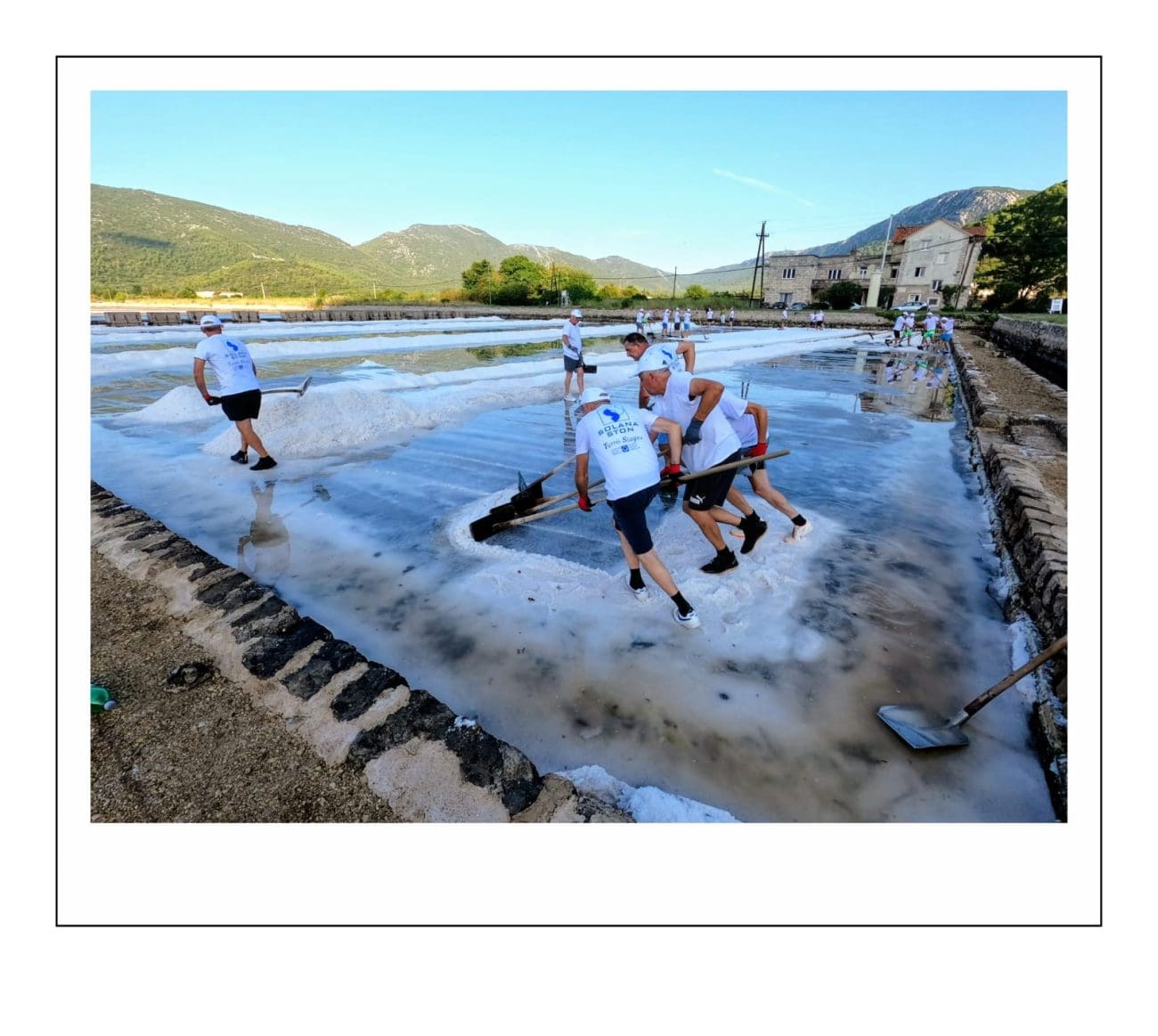Slika je gotovo ista kakva je bila i prije nekoliko stotina godina: muškarci u bijelim majicama i kapama ulaze u bazene i lopatama skupljaju sol, potom je prenose u stare drvene vagone. Težak, ali ritmičan rad, popraćen osmijesima i zajedništvom, vraća u život duh vremena kada je sol bila “bijelo zlato” i čuvala bogatstvo Dubrovačke Republike.