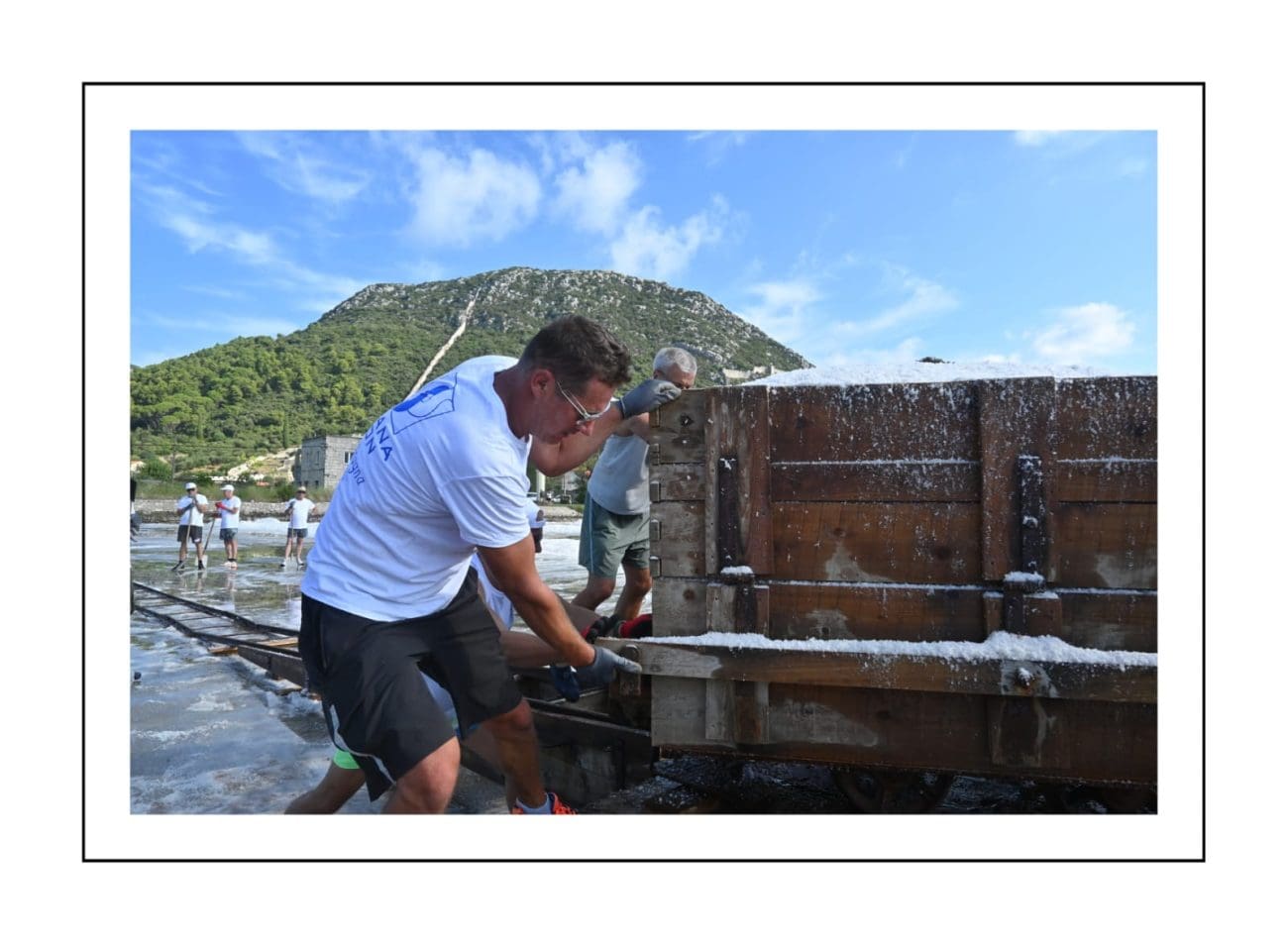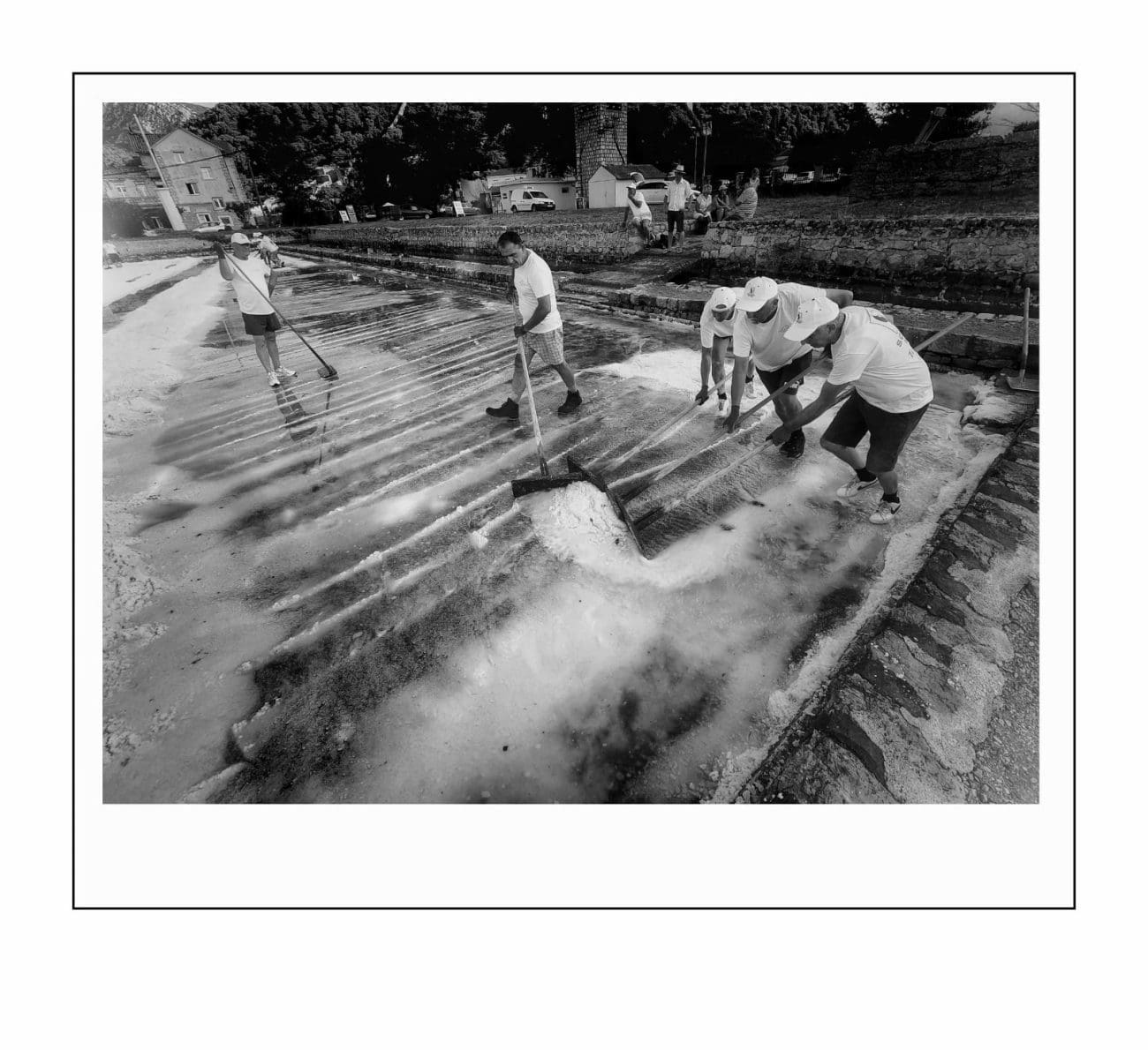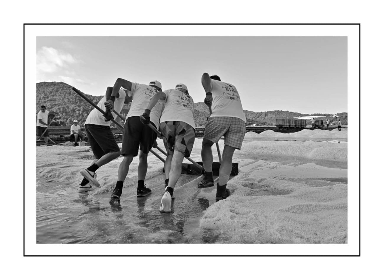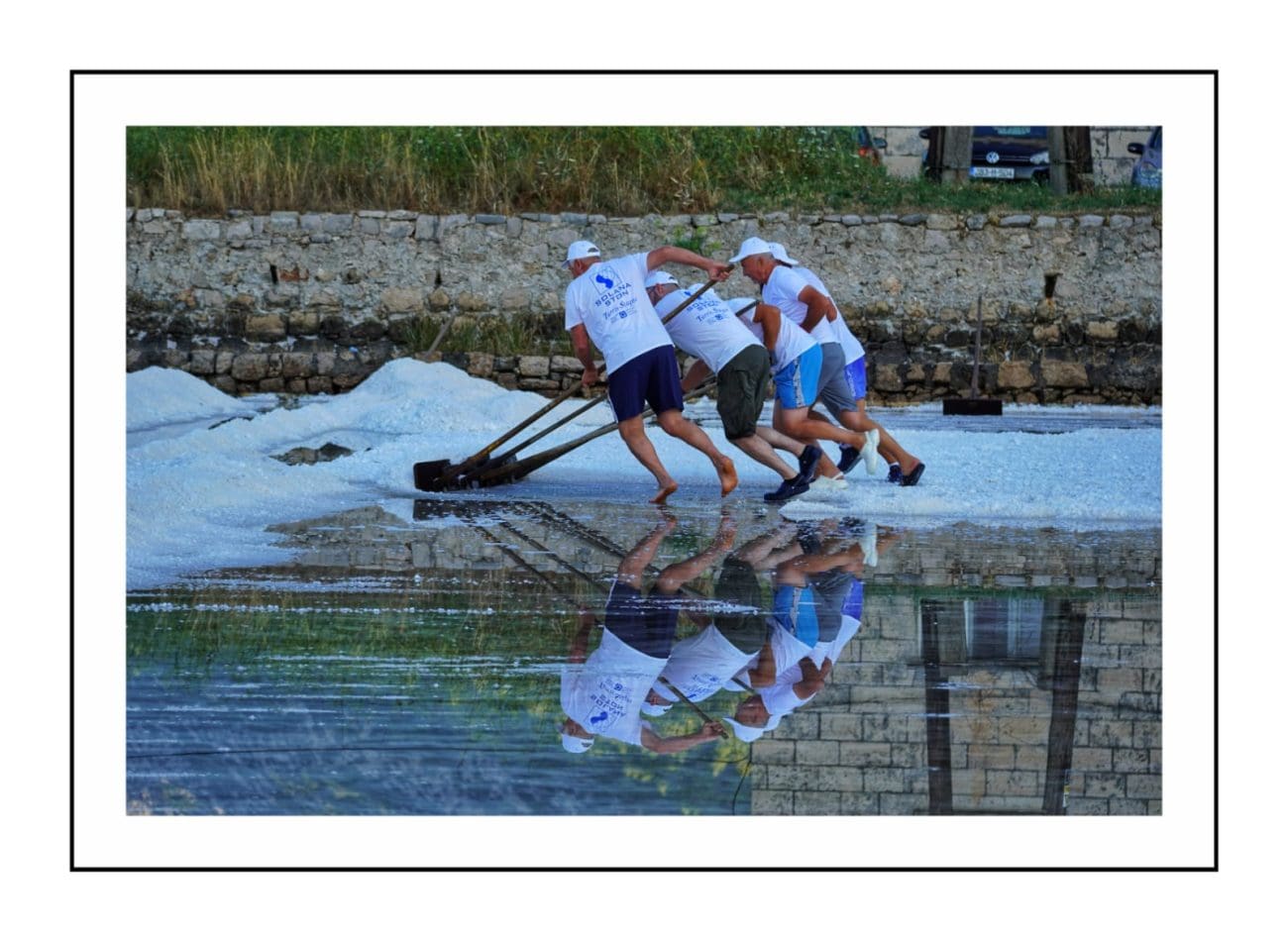 Slika je gotovo ista kakva je bila i prije nekoliko stotina godina: muškarci u bijelim majicama i kapama ulaze u bazene i lopatama skupljaju sol, potom je prenose u stare drvene vagone. Težak, ali ritmičan rad, popraćen osmijesima i zajedništvom, vraća u život duh vremena kada je sol bila “bijelo zlato” i čuvala bogatstvo Dubrovačke Republike.