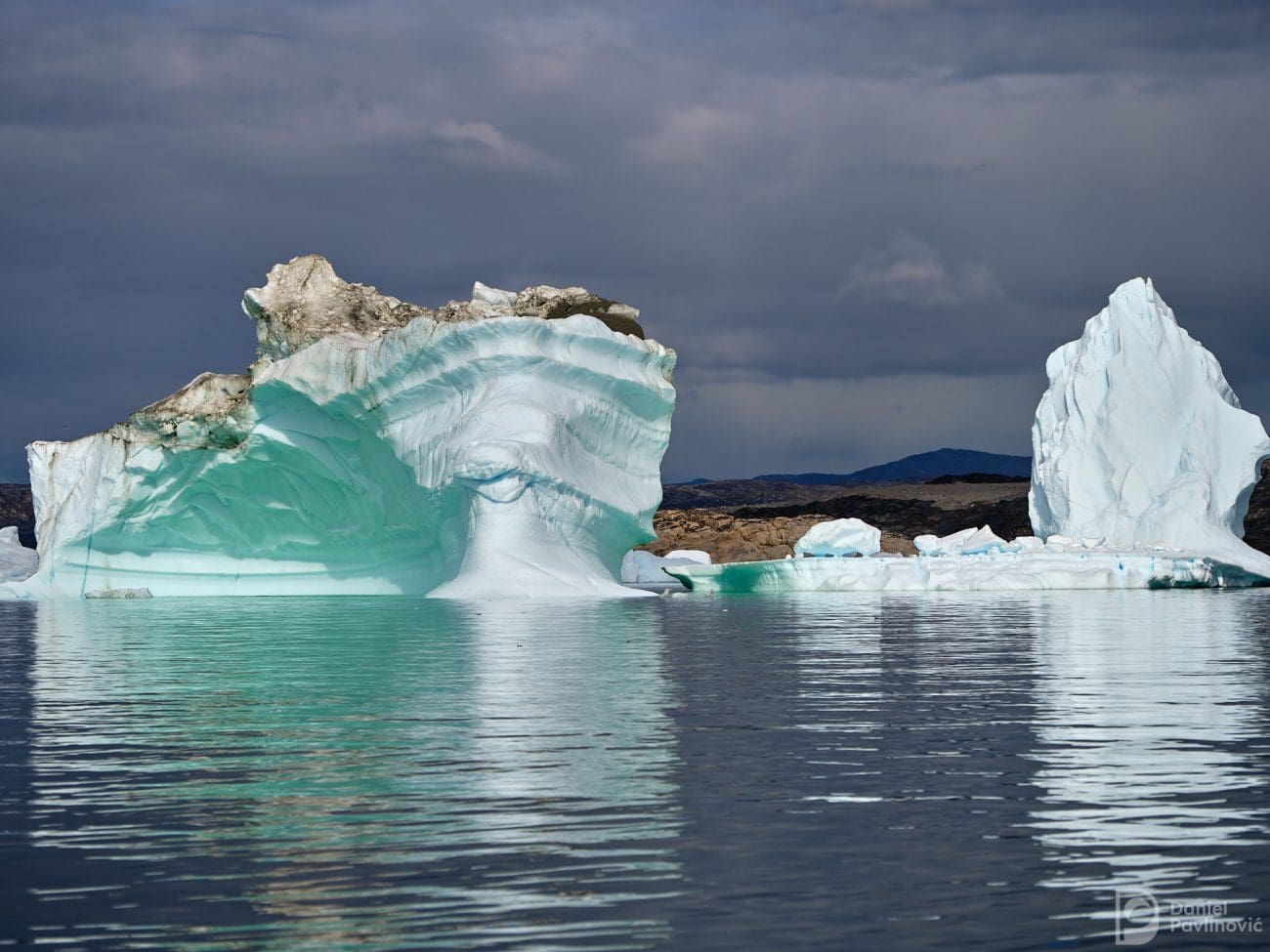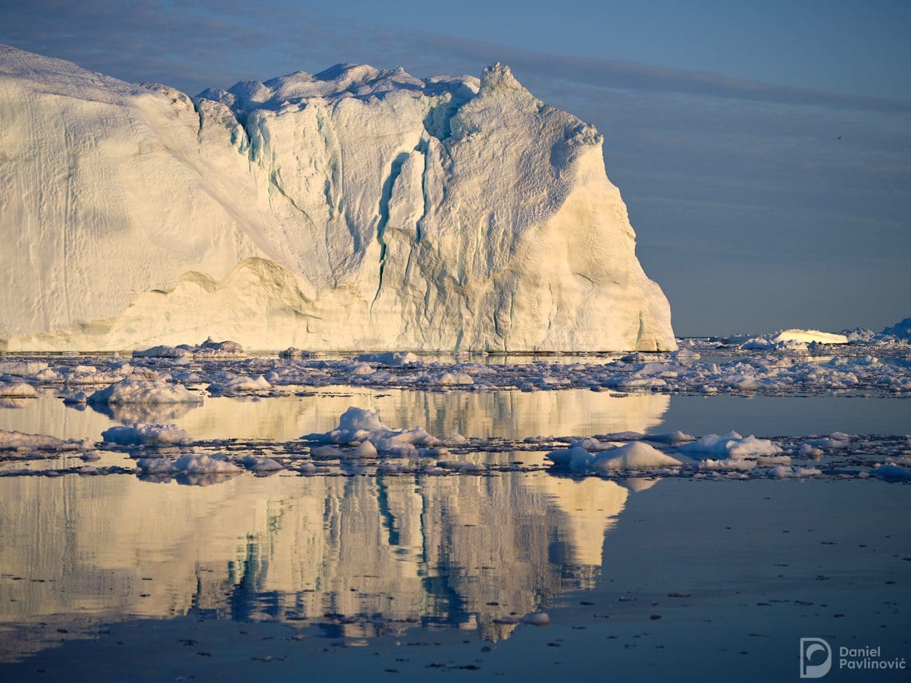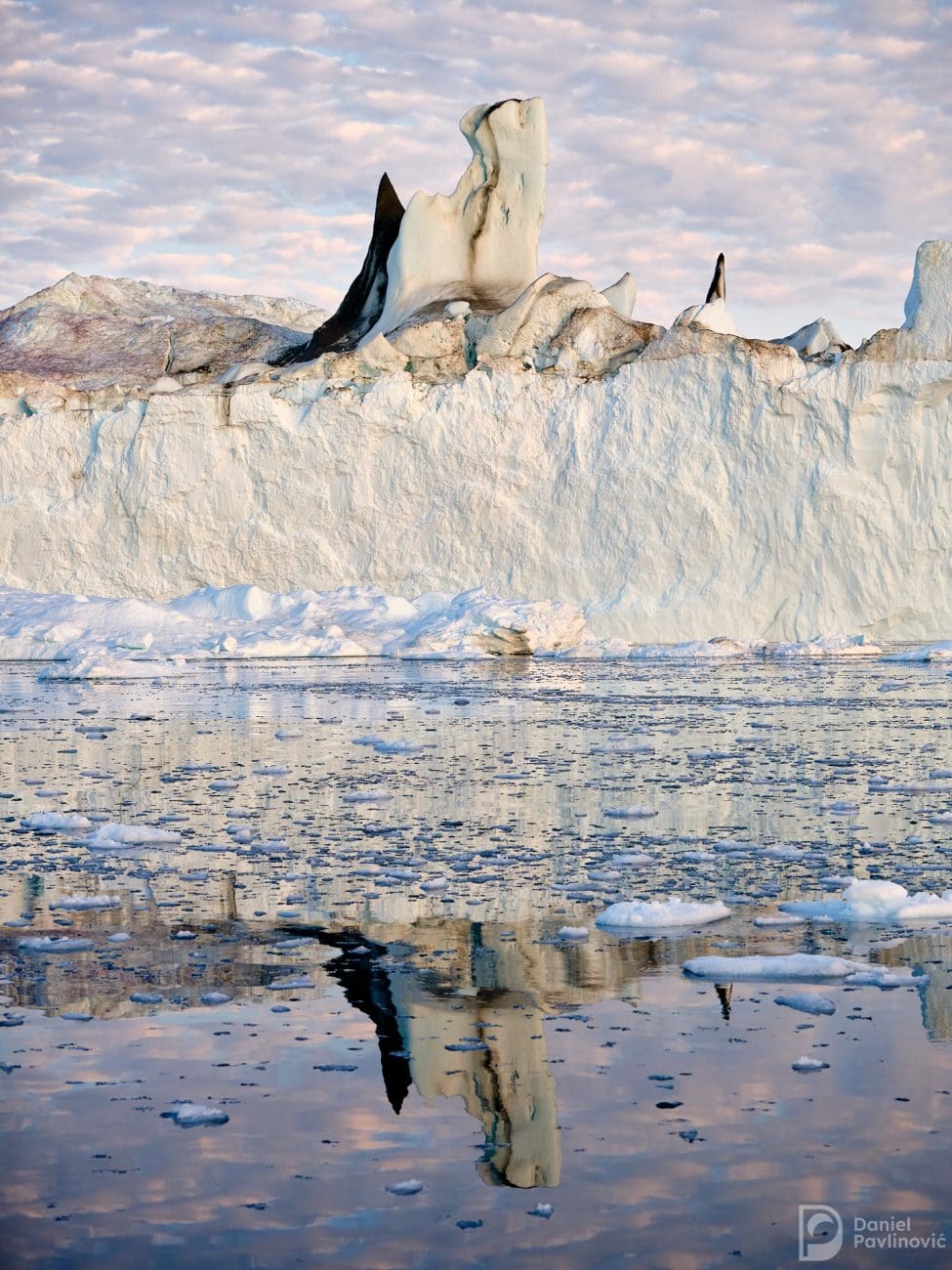 Dva sata s brzim čamcem obilazili smo područja koja u prvoj turi nisam obišao i pritom dosta pričali o životu na Grenlandu, rastu turizma, vremenu, kao i mjerljivom zatopljenju, povezanom s globalnim porastom temperature, zbog kojeg se led u tom području povlači, a sante gube na visini, osobito posljednjih dvadeset godina. Vrijeme je i ovaj put bila gotovo bonaca, iako ne potpuno sunčano, što mi je za fotografiju u ovo doba dana i odgovaralo.