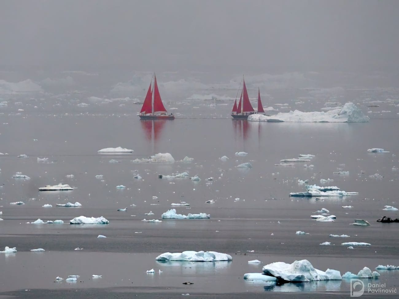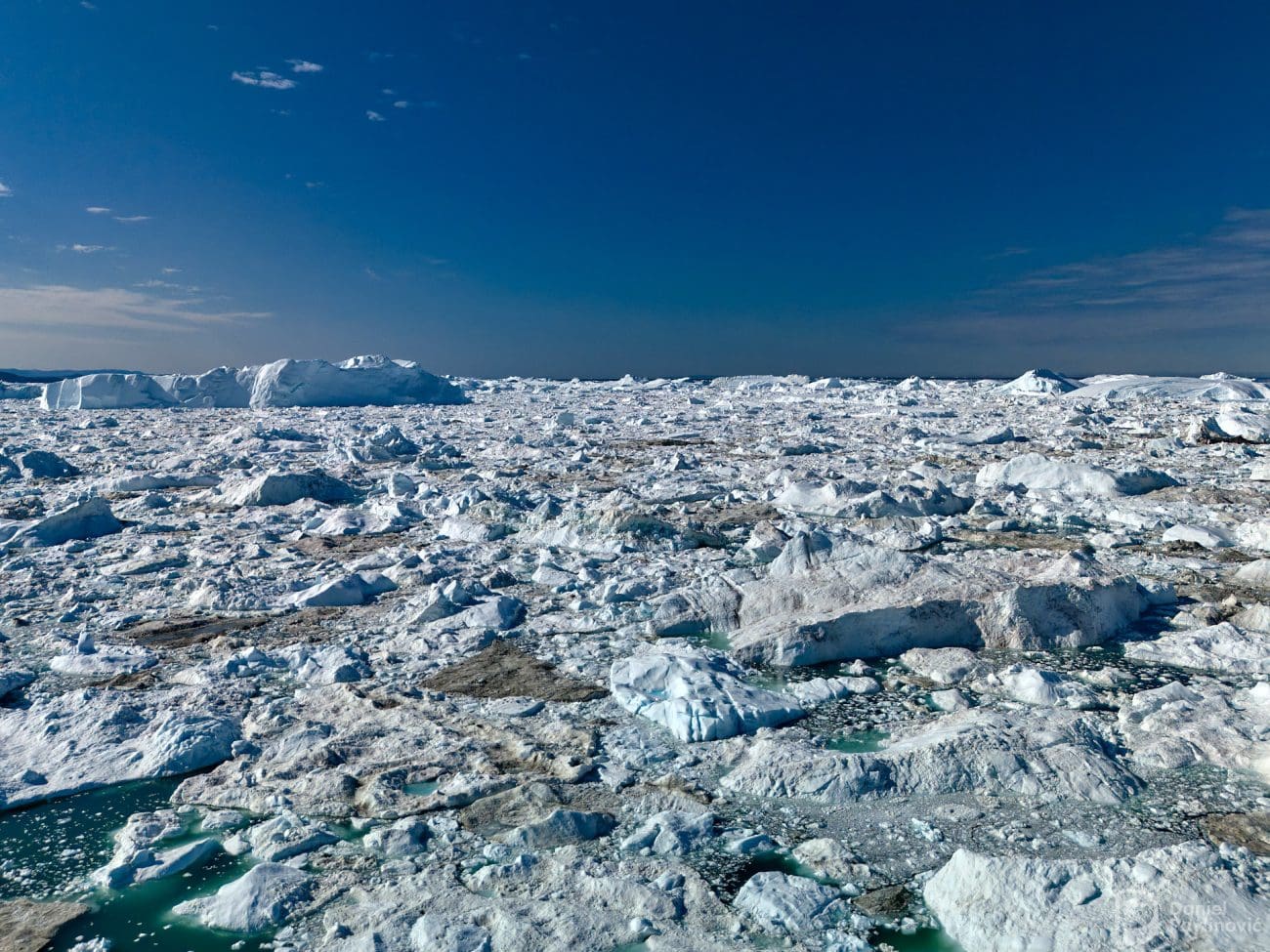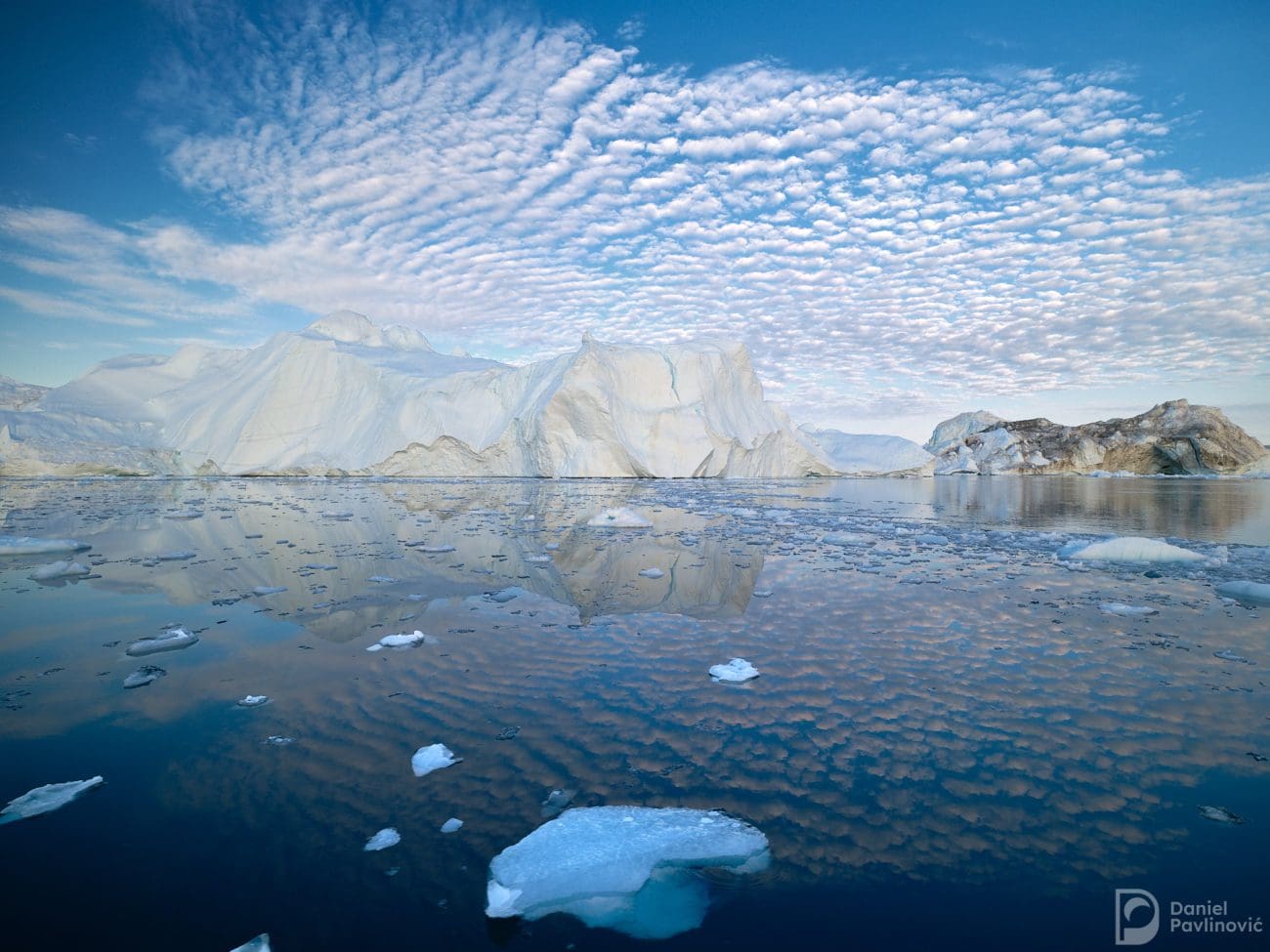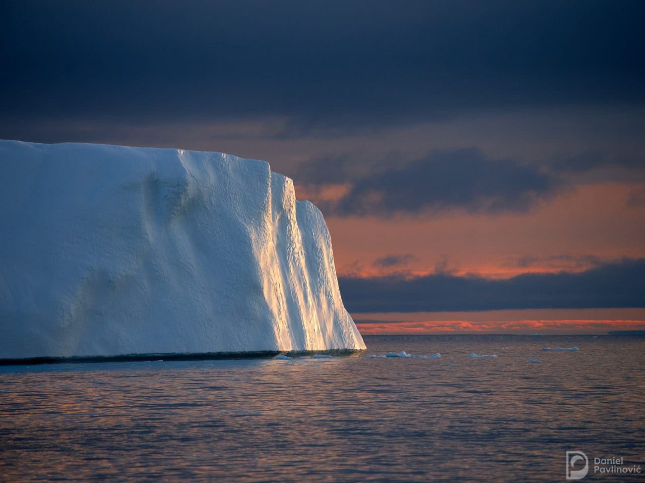 Dva sata s brzim čamcem obilazili smo područja koja u prvoj turi nisam obišao i pritom dosta pričali o životu na Grenlandu, rastu turizma, vremenu, kao i mjerljivom zatopljenju, povezanom s globalnim porastom temperature, zbog kojeg se led u tom području povlači, a sante gube na visini, osobito posljednjih dvadeset godina. Vrijeme je i ovaj put bila gotovo bonaca, iako ne potpuno sunčano, što mi je za fotografiju u ovo doba dana i odgovaralo.