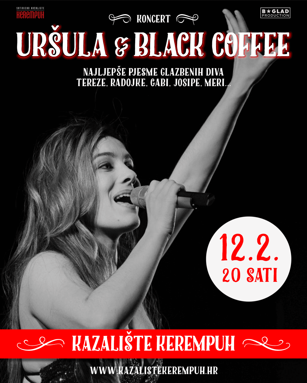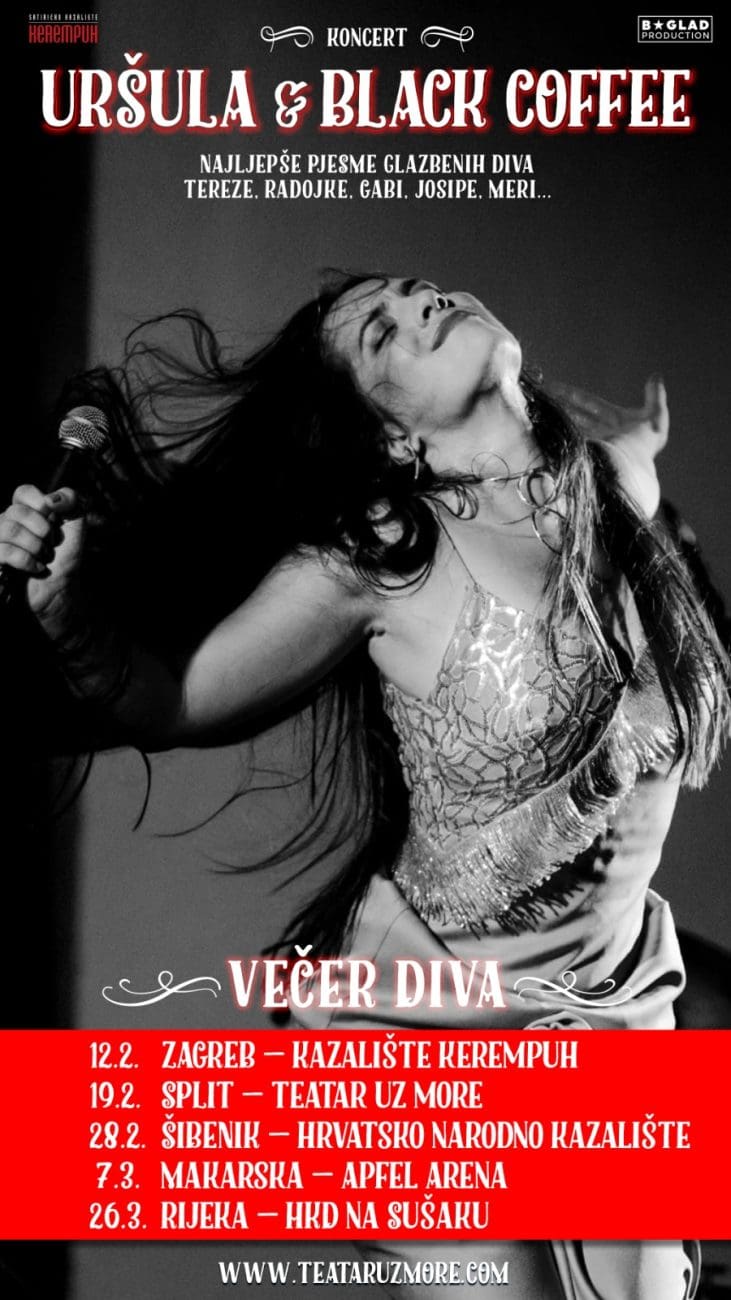 Upravo tim bezvremenskim pjesmama i iznimnom talentu naših glazbenih diva posvećen je koncert "Najljepše pjesme hrvatskih diva Tereze, Gabi, Josipe, Radojke, Meri..." u izvedbi Uršule Najev & Black Coffee.