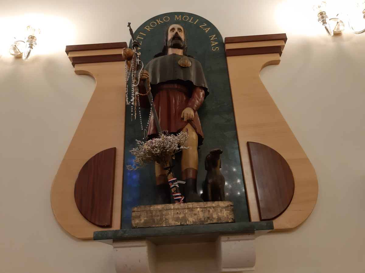 Oltar je podignut i posvećen svetom Roku 24. kolovoza 1987. godine. Kip svetog Roka i drugi kipovi obnovljeni su 1989. godine. U crkvi se nalazi više slika, pa je 1990. godine župnik don Stipe Žuro u njoj otvorio galeriju sakralne umjetnosti.
