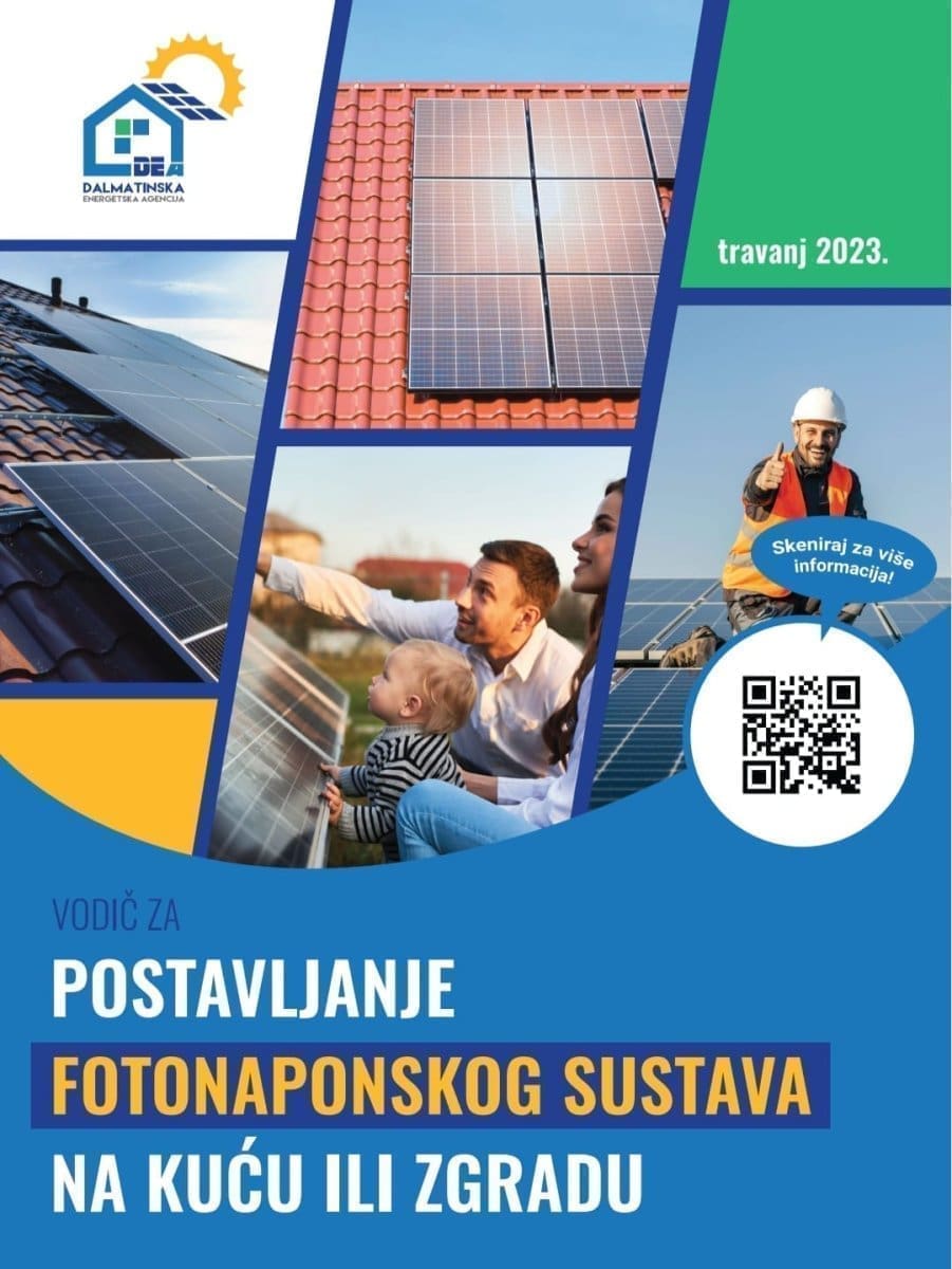 Dalmatinska energetska agencija pripremila je i tiskala Vodič za postavljanje fotonaponskog sustava na kuću ili zagradu. Riječ je o sveobuhvatnom i detaljnom Vodiču koji će građanima odgovoriti na brojna pitanja vezana uz korištenje sunčane energije. Stručnjaci Dalmatinske energetske agencije pripremili su teme o tome isplati li se ugraditi fotonaponski sustav, kakva je pravna procedura, kakve se porezne stope primjenjuju kao i iscrpne tehničke karakteristike važne za postavljanje sustava. Tehnologija korištenja energije Sunca sve je pristupačnija i vrlo praktična za proizvodnju energije jer se fotonaponski paneli jednostavno mogu instalirati na krovove zgrada. Uz to, solarna energija uz najmanja ulaganja daje najveću uštedu. Kada znamo da Splitsko-dalmatinska županija prosječno ima 2500 sunčanih sati godišnje, a samim tim značajan potencijal za bolje korištenje sunčevih resursa, jasno je zašto stanovnike Splitsko-dalmatinske županije želimo detaljno informirati o potencijalima i mogućnostima koje im pruža ovakav oblik tehnologije“, kazao je ravnatelj Dalmatinske energetske agencije Mario Jakić.