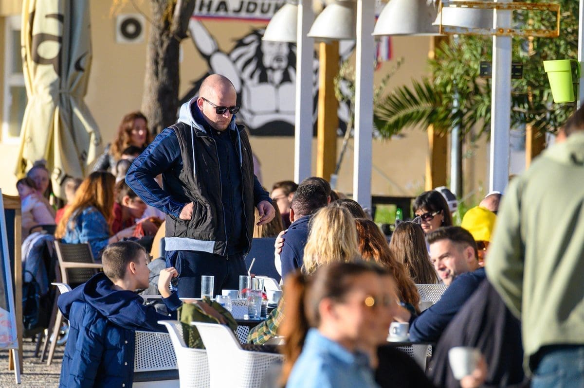 Atmosferu kod Žbirca dodatno je ugrijao harmonikaš koji je svirao dalmatinske i navijačke pjesme. Što smo snimili na najpopularnijoj splitskoj plaži pogledajte u fotogaleriji.