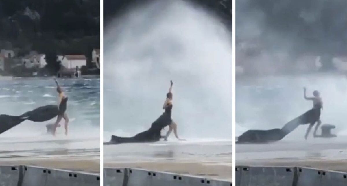 I dok je trajekt iz Preka prema Zadru muku mučio da pristane u Gaženicu, pa je udario u lukobran i srećom, pristao u staru zadarsku luku bez posljedica za putnike, posadu i brod, ova djevojka je odlučila demonstrirati pravi dalmatinski dišpet.