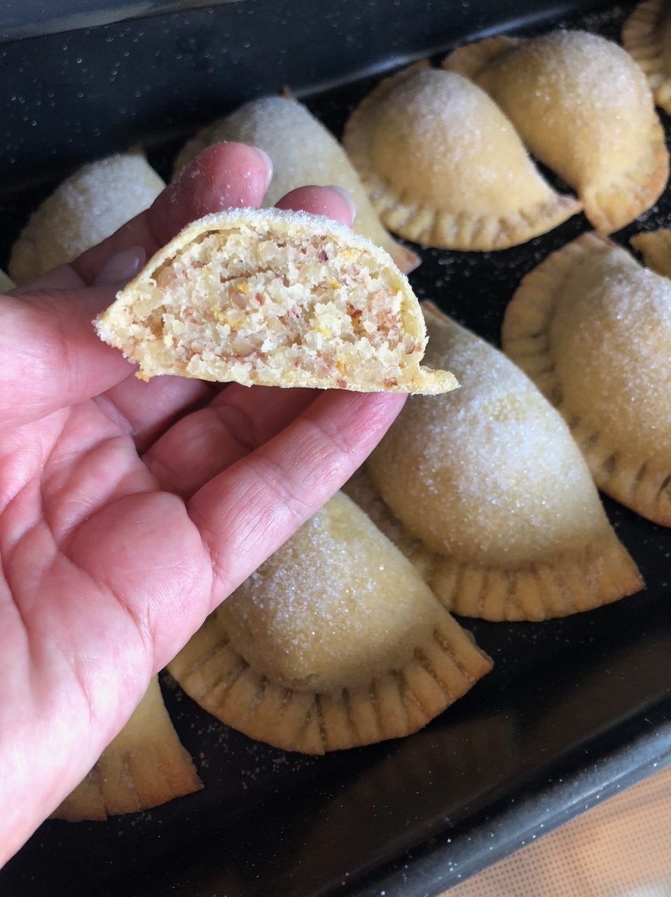 Osim sirnica, na uskrsnom blagdanskom stolu u Dalmaciji najčešće se mogu naći rafioli - slastica koju ja volim više od ičega. Kad se moja Lea krizmala, od ludila sam ih zaboravila naručiti i nije mi bilo druge nego ih pokušati sama napraviti. Nisu bile najidealnijeg izgleda, ali danas će vam moji prijatelji i poznanici reći kako su moji rafioli prilično dobri. Mnogi od vas znaju da kod nas u Hrvatskoj postoje Imotski i Trogirski rafioli. Meni su draži ovi drugi jer su žene u Trogiru u svoje stavljale uvijek samo bademe. I to ne bilo kakve. Polovina je trebala biti lagano tostirana, a polovina blanširana. Prije samog recepta još jedna napomena. Ako imate prijatelje loji ne konzumiraju ništa životinjskog porijekla, upotrijebite odličnu kokosovu mast. I inače, pripazite pri izboru svinjske masti. Potražite neku neutralnog mirisa. (Ne smijem navesti proizvođača he, he)