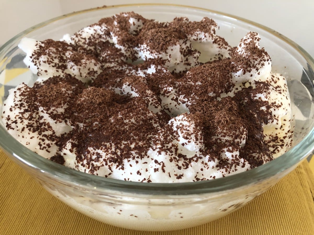 U zdjelu posložite kekse Petit Beure poprskane rumom. Mlijeko zagrijte i kad je dovoljno vruće velikom žlicom uzimajte bjelanjke pa ih spuštajte u vruće mlijeko. Prokuhajte. Otprilike minutu i po. Ja ih polijevam mlijekom sa svih strana. Vadite ih rešetkastom žlicom i slažite po keksima.