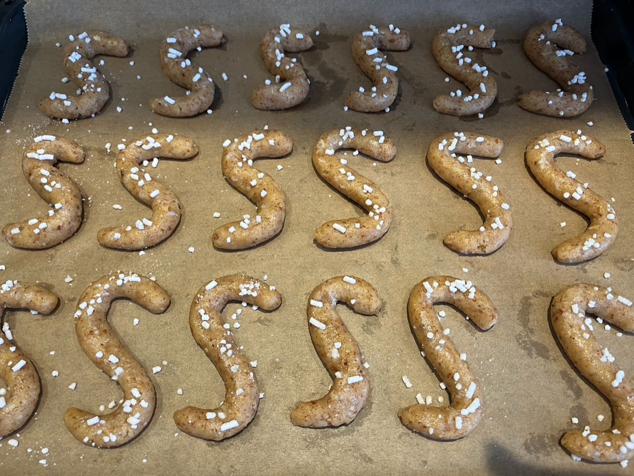U posudi izmiješajte brašno, šećer, prašak za pecivo, koricu limuna i vaniliju. Dodajte jaje, Marsalu i omekšali maslac. Napravite tijesto mijeseći rukama ili ručnim mikserom. Tijesto zamotajte u prozirnu foliju i ostavite u hladnjaku dvadesetak minuta. Izvadite ga i podijelite na otprilike 18 komada. Svakog zarolajte u obliku zmije, zavijte u obliku slova S. Premažite mlijekom i pospite granuliranim šećerom. Ili običnim. Pecite na 170 (gornji i donji grijači) 20-25 minuta.