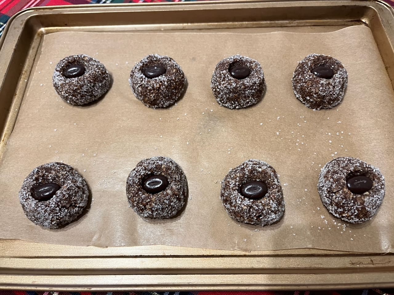 Lješnjake tostirati pa im oguliti ljuskice i dobro ih samljeti. Mljevenim lješnjacima dodati šećer, kakao prah, dvije žlice kave i bjelanjke. Sjediniti u smjesu. Ja obično ovakve kolačiće prije oblikovanja zarolam u kobasicu pa kad ih režem na komade ispadnu otprilike jednake veličine. Vi možete I vagati svaki komad. Onda napravite kugle, svaku uvaljate u mljeveni šećer i vrškom kuhače napravite po sredini udubljenje. U svako udubljenjnje dodajte ili komadiće čokolade ili još bolje čokoladna zrna kave koje danas imate kupiti u većim supermarketima. Pecite ih na 180 C, 10-15 minuta. Ovisno o peći. Kad ih izvadite, poput sličnih keksića su mekani. Pustite ih da se ohlade, stisnut će se.