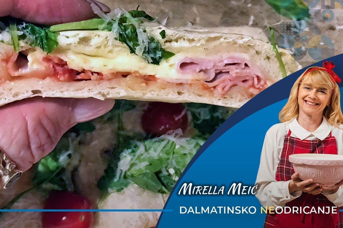 Kako je riječ o pizzeriji, sasvim je logično da je sendvič napravljen upravo od tog tijesta, a u receptu kojeg donosim stavila sam punjenje koje moji vole. Vi možete po svom guštu. I idealan je kad vam dođu prijatelji na neko neobavezno druženje. Kad nitko od vas ne očekuje večeru u tri slijeda.