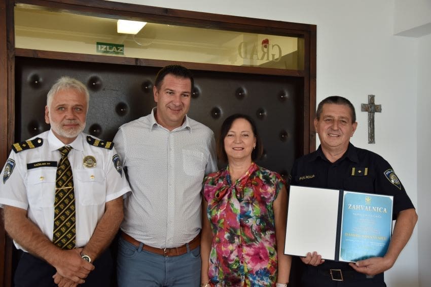 Riječ je o Damiru Karanušiću, službeniku Policijske postaje Kaštela. Na prijemu je sudjelovao gradonačelnik Kaštela Denis Ivanović, dogradonačelnica Jadranka Matok Bosančić te načelnik Policijske postaje Kaštela Neno Gudelj.