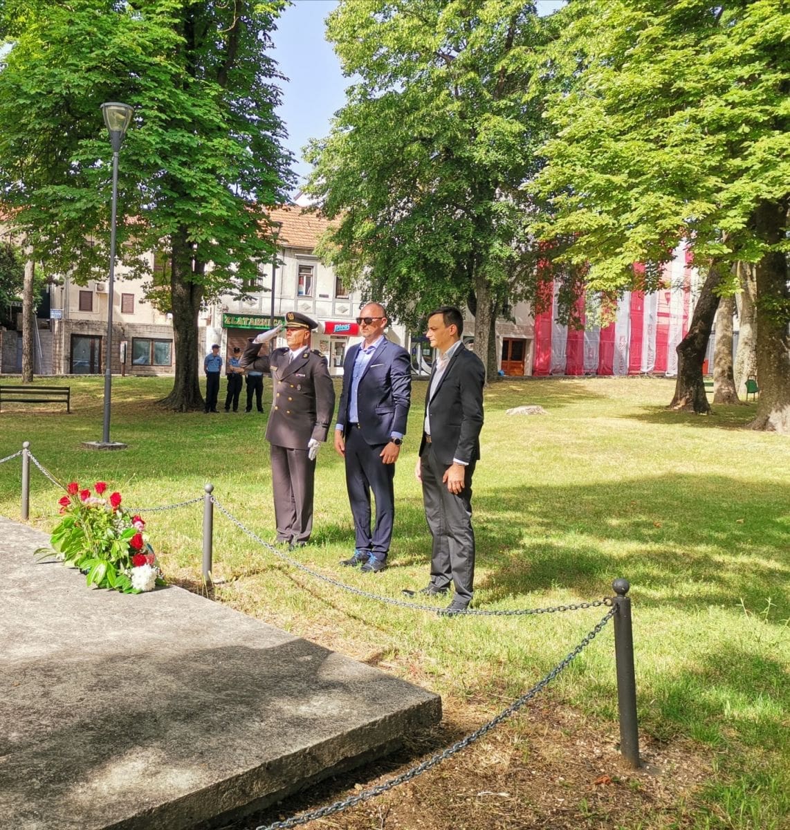 Himnu "Lijepa naša" intonirala je Gradska glazba Sinj, koja je prije polaganja vijenaca svirala budnicu ulicama grada.