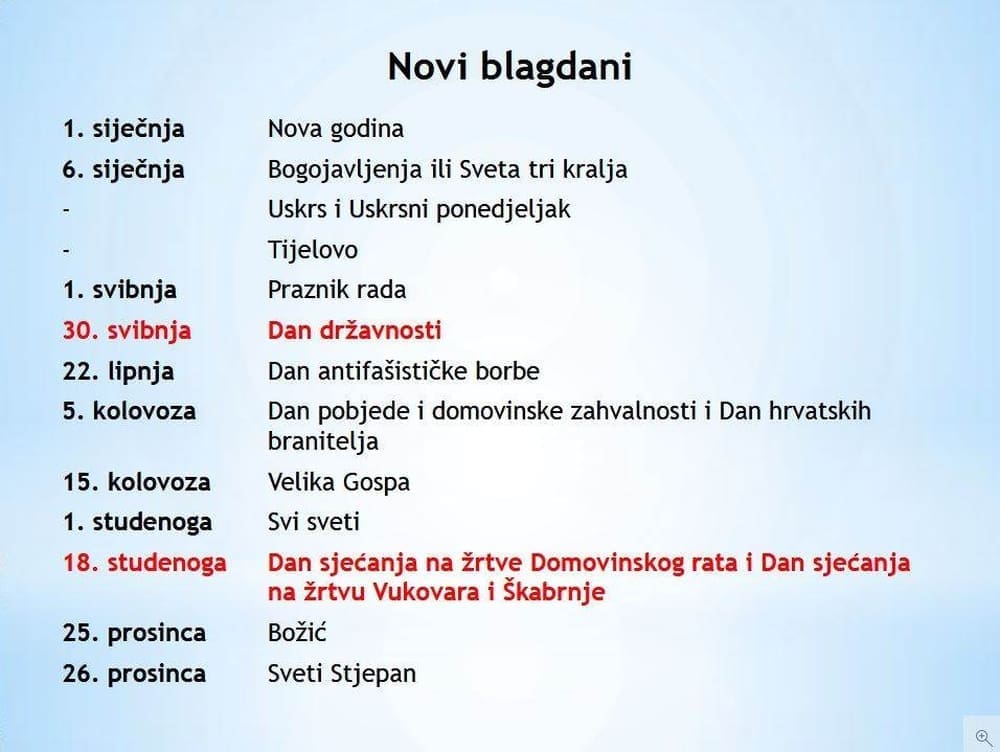 - Najveća promjena odnosi se na 18. studenoga koji postaje Dan sjećanja na žrtve domovinskog rata i Dan sjećanja na žrtvu Škabrnje -, rekao je premijer Plenković na sjednici Vlade gdje su i pokazani prijedlozi novih kalendara blagdana i spomendana.